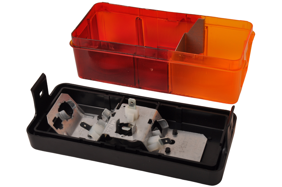 Feu arrière droit à 3 compartiments avec clignotants, feux stop et arrière et fermeture à clic. Hella n° 2SD 002 582-021