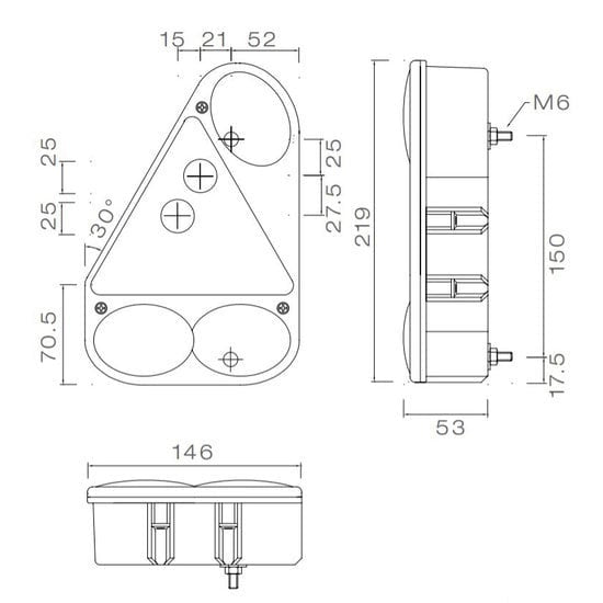 L'Aspock Earpoint 3 est doté d'un connecteur à 5 broches qui vous permet de connecter facilement la lampe. Un trou de 30 mm est nécessaire pour connecter les connecteurs à l'unité. Le connecteur supplémentaire à 3 broches peut être utilisé pour connecter un éclairage de plaque d'immatriculation supplémentaire.