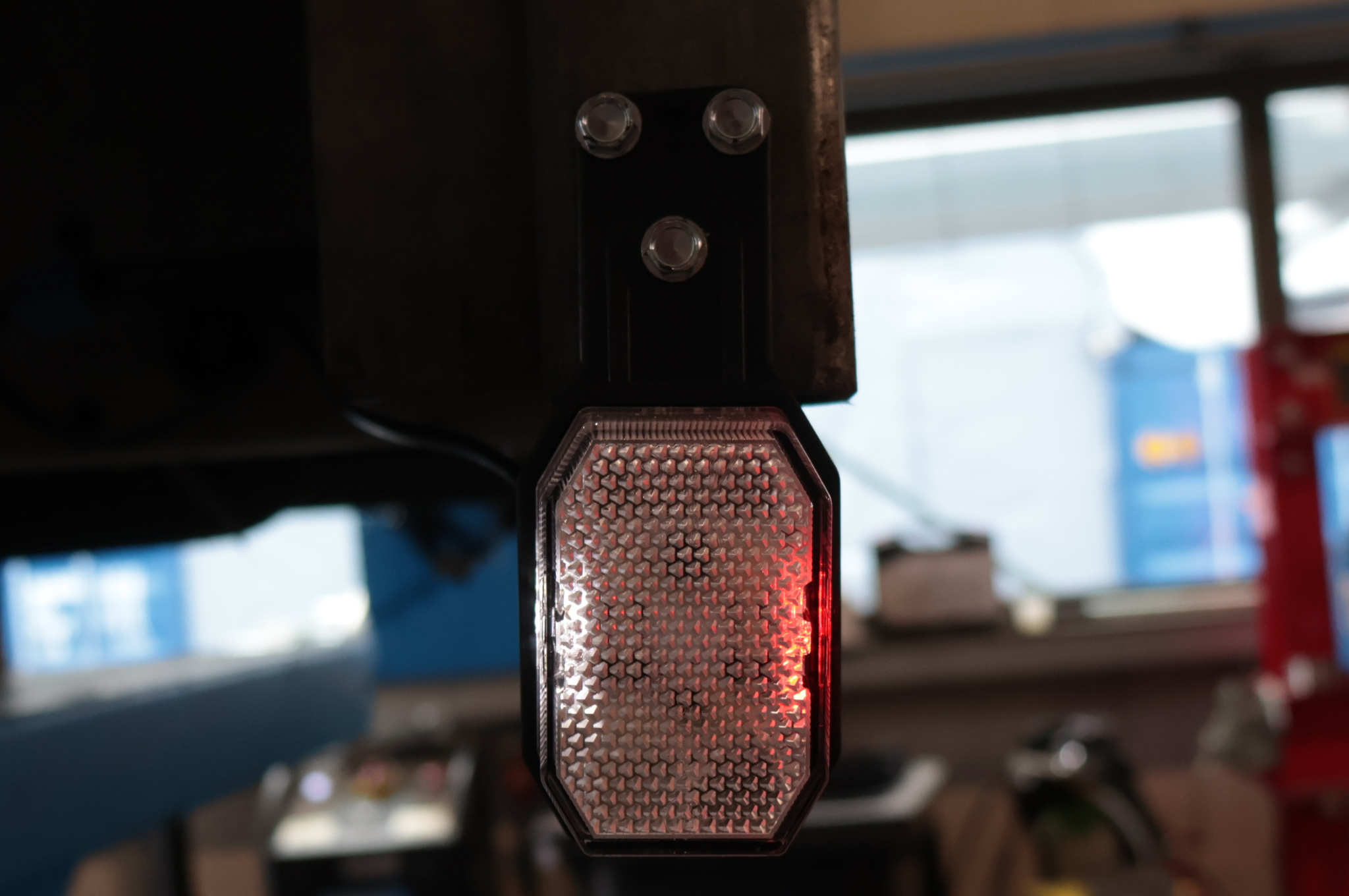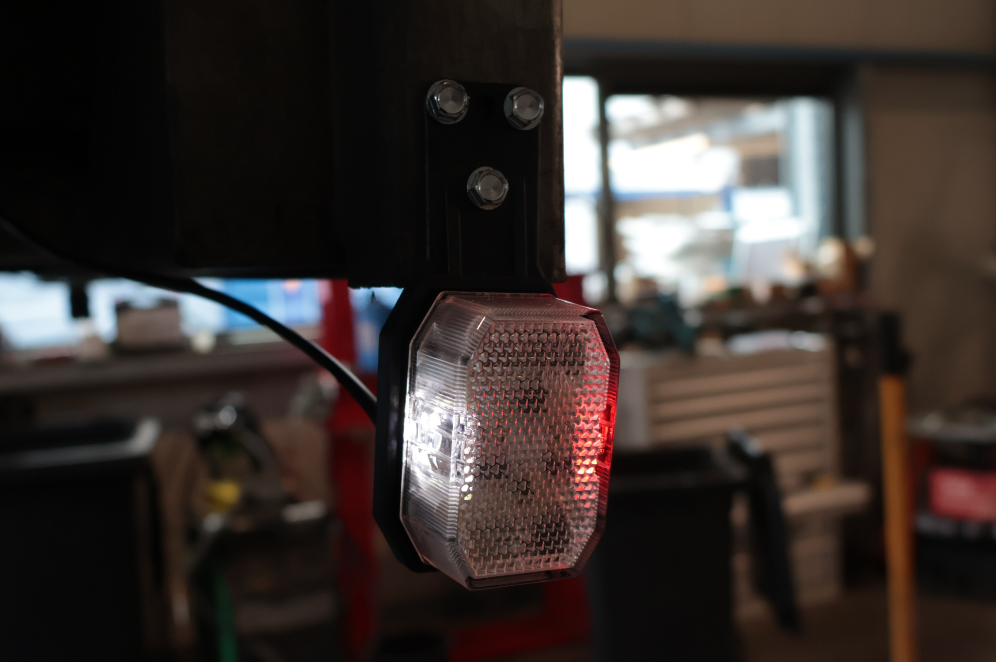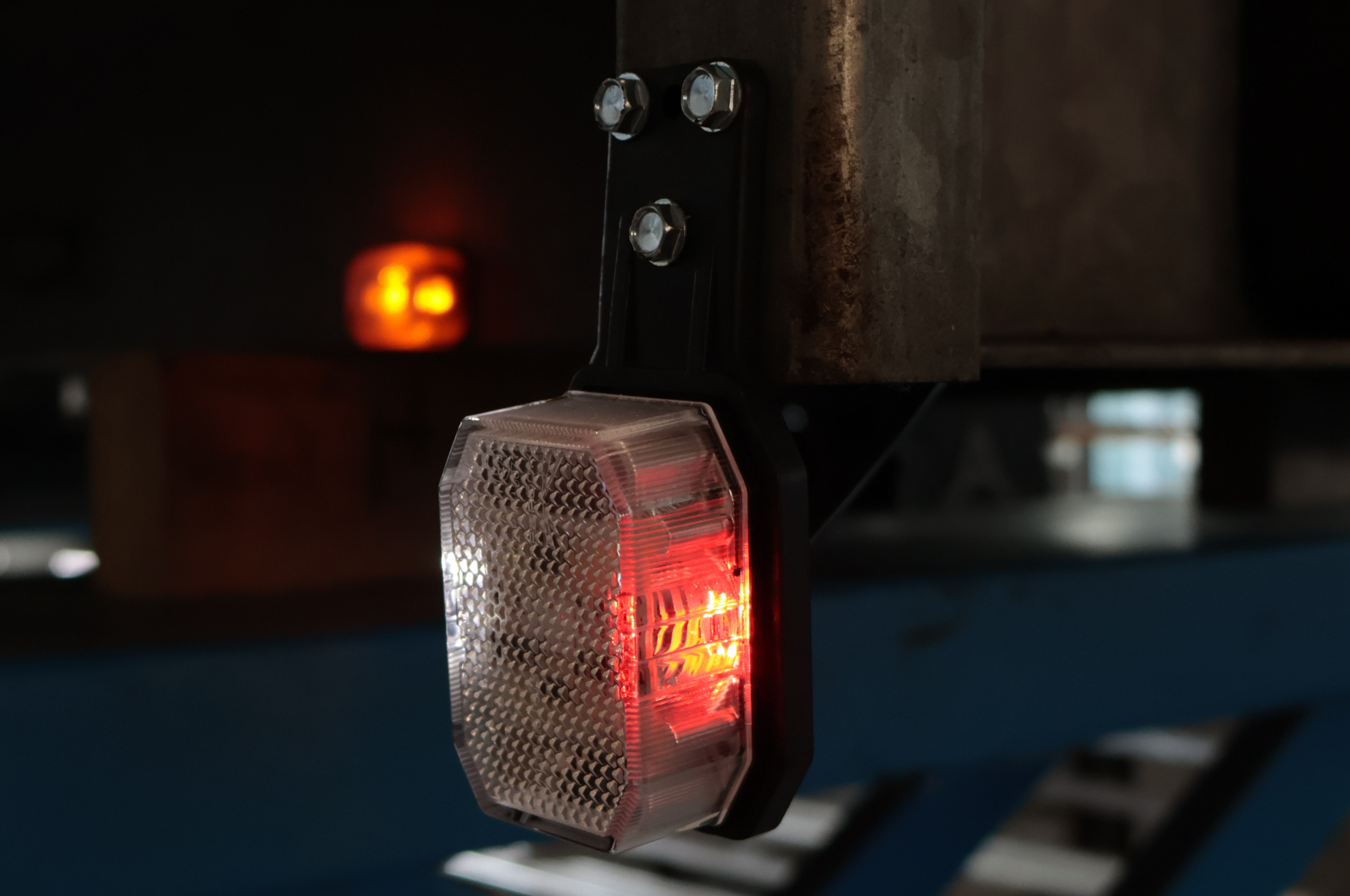Aspöck Flexipoint LED Feu de gabarit gauche - rouge/blanc sur petit support en caoutchouc avec 0,5m de câble