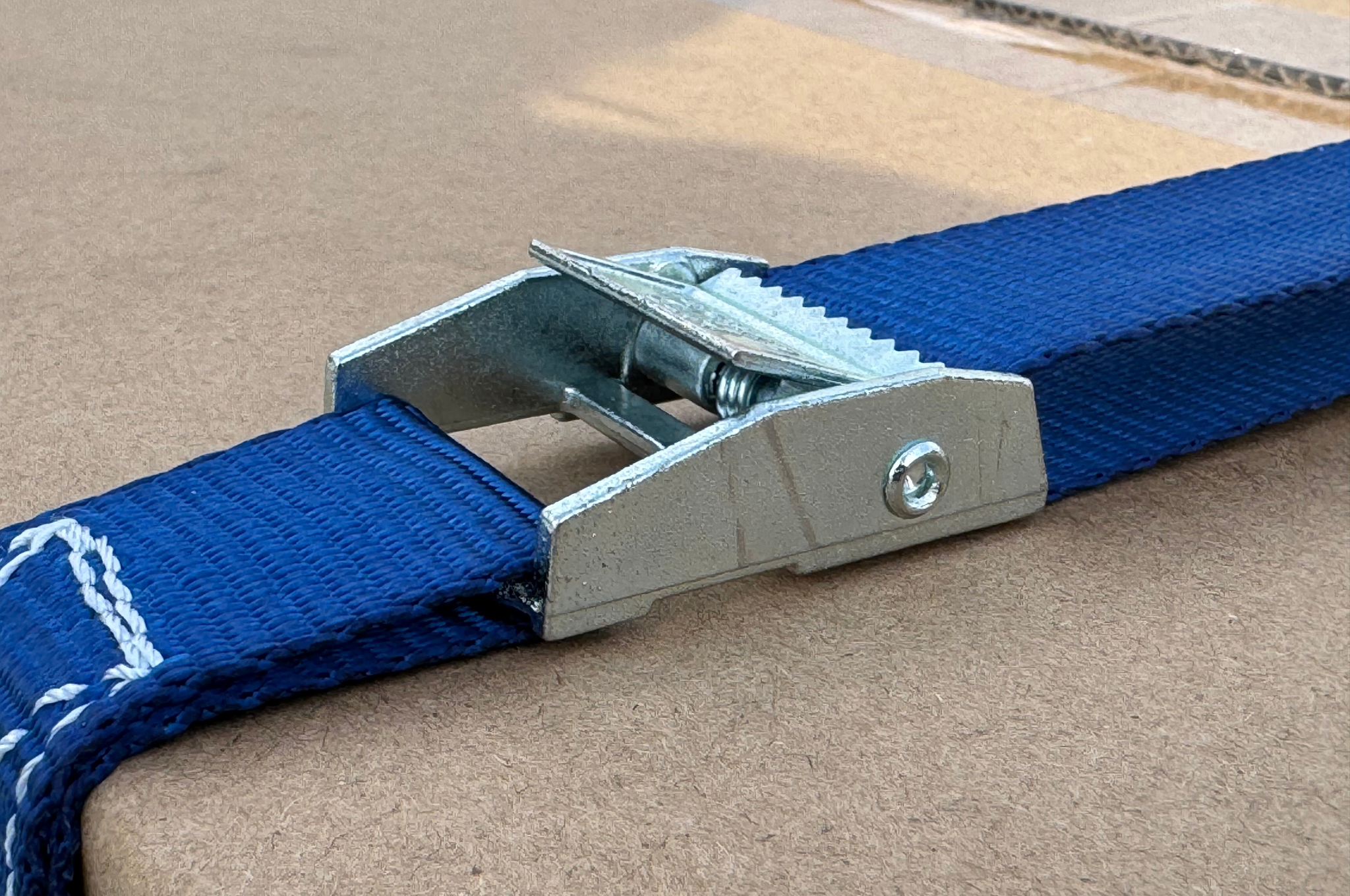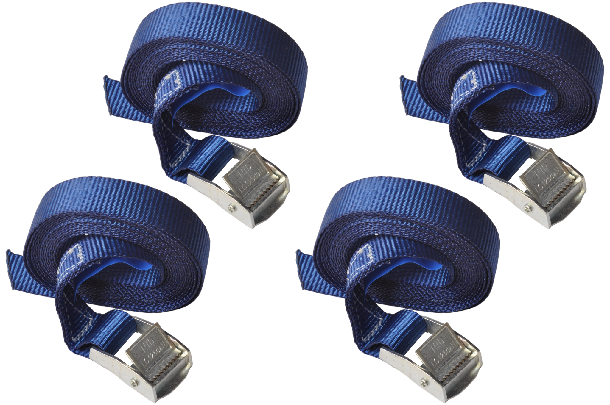Lot de 4 sangles d'arrimage - 300x2,5 cm - bleu - charge de rupture 250 kg