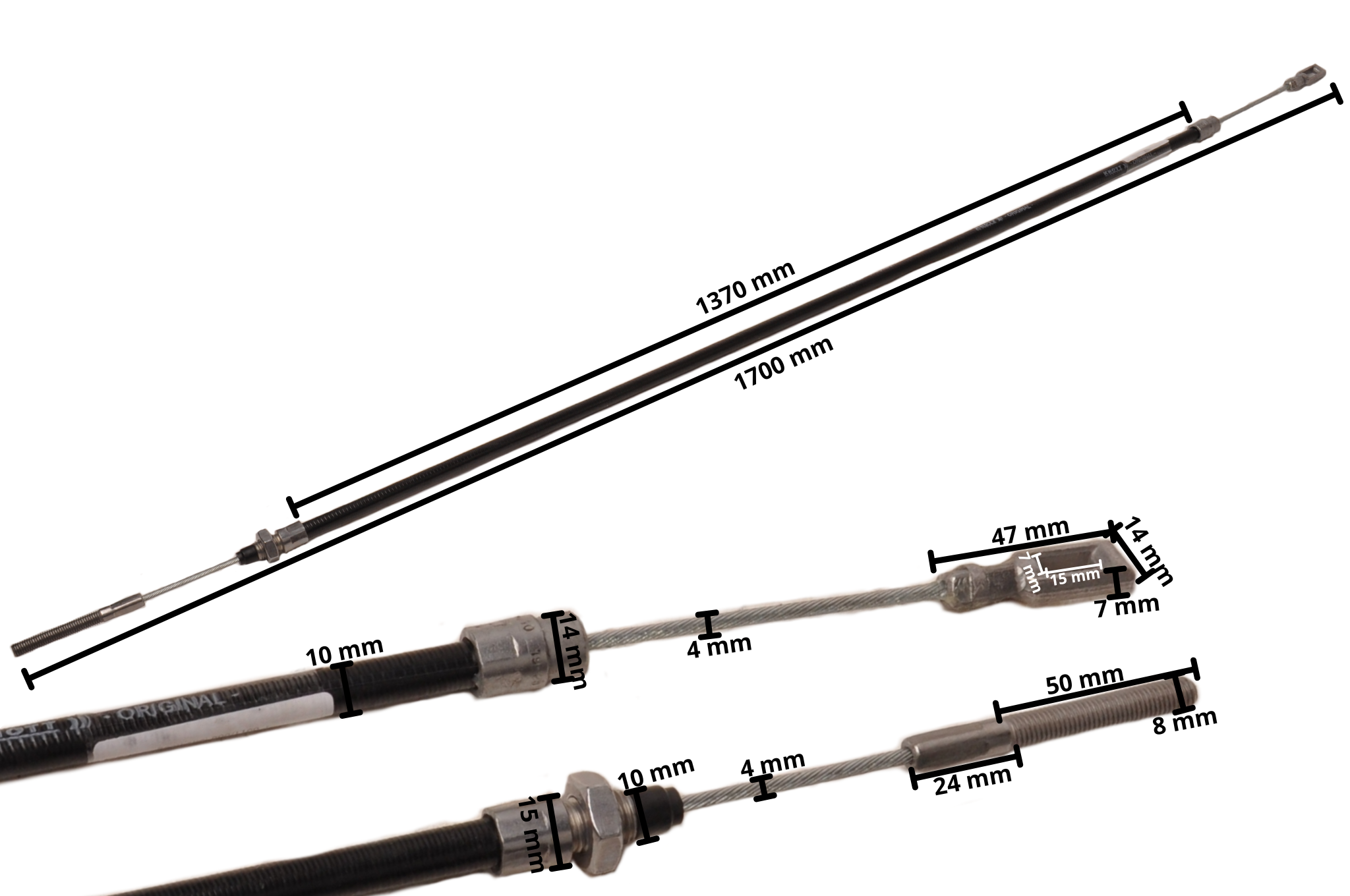 Câble de frein de remorque 1400/1700 + anneau de câble de frein + filetage M8