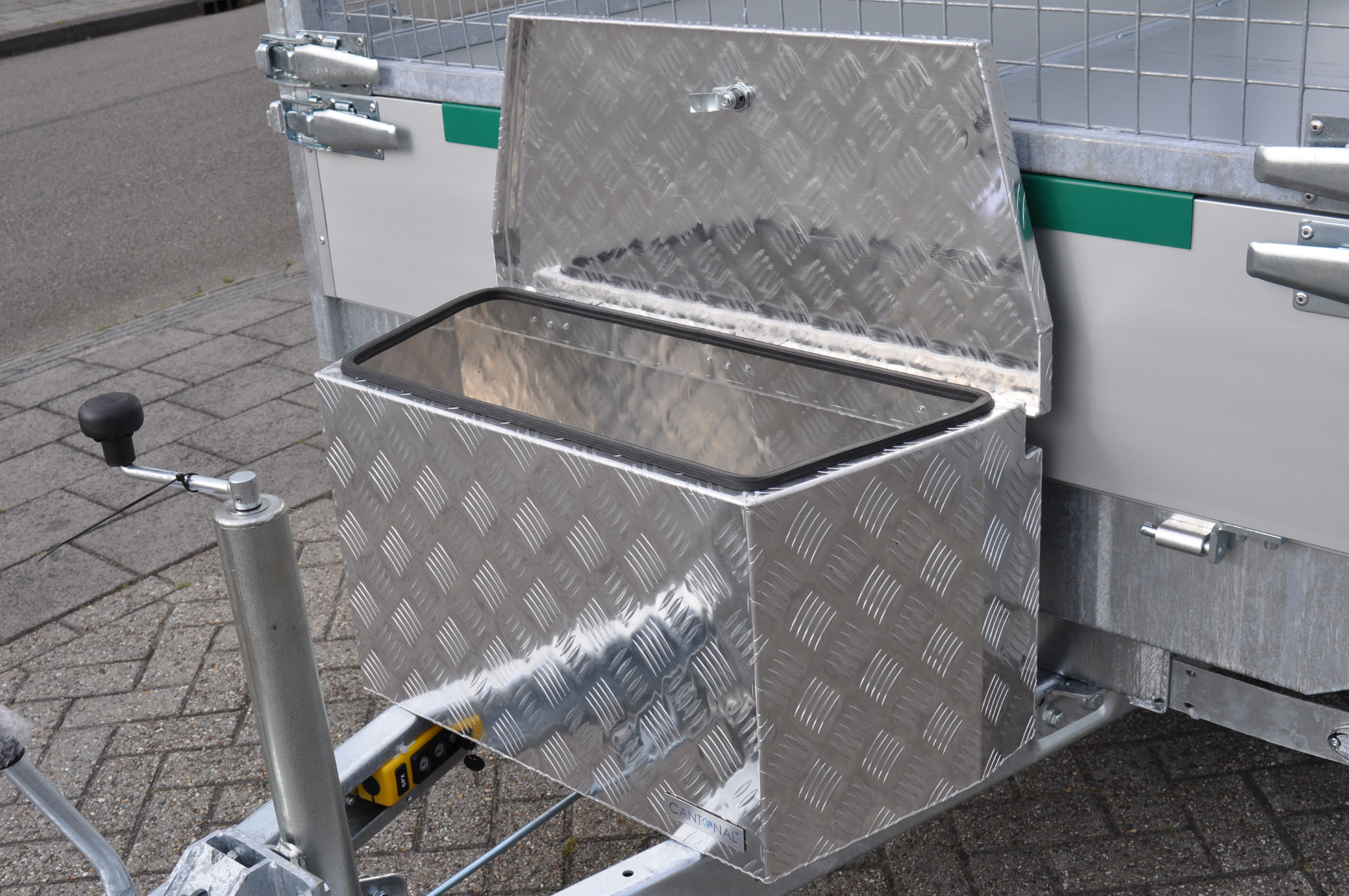 Ce coffre de timon en tôle striée d’aluminium est idéal pour le transport d’outils ou de pièces détachées, par exemple sur une remorque. Le coffre est équipé d’un bord en caoutchouc qui permet une fermeture douce. Le couvercle, sans vibrations, recouvre le coffre et le rend résistant aux projections d’eau. Il peut être fixé sur la timonerie d’une remorque ou d’une caravane à l’aide du kit de fixation disponible en option.