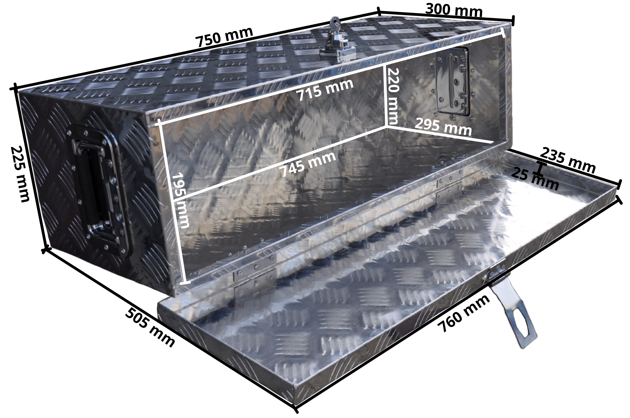 Coffre de timon en tôle aluminium antidérapante 760x235x300 mm – fermeture papillon