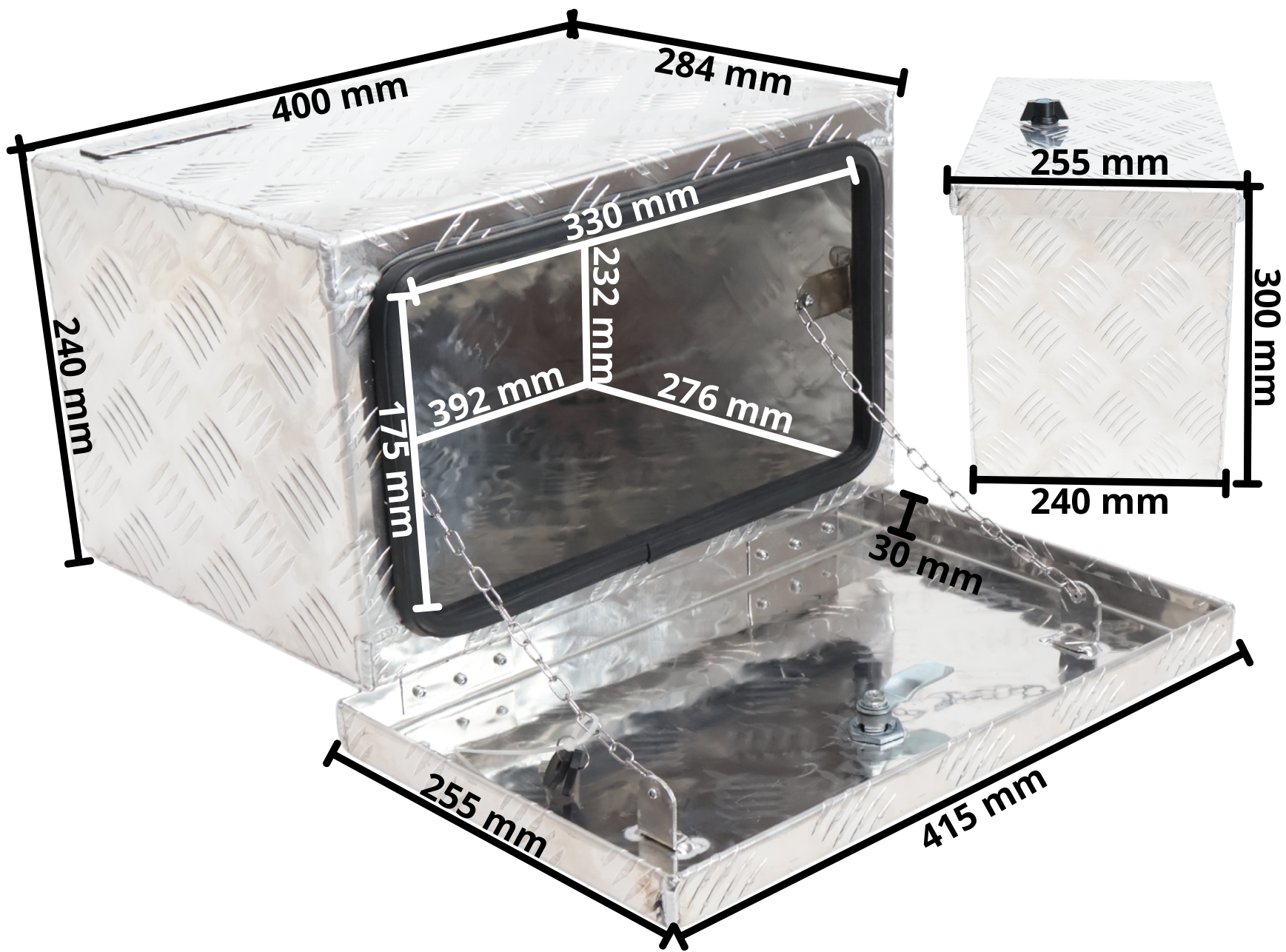 Coffre de timon en tôle aluminium larmée - 400×240×300 mm