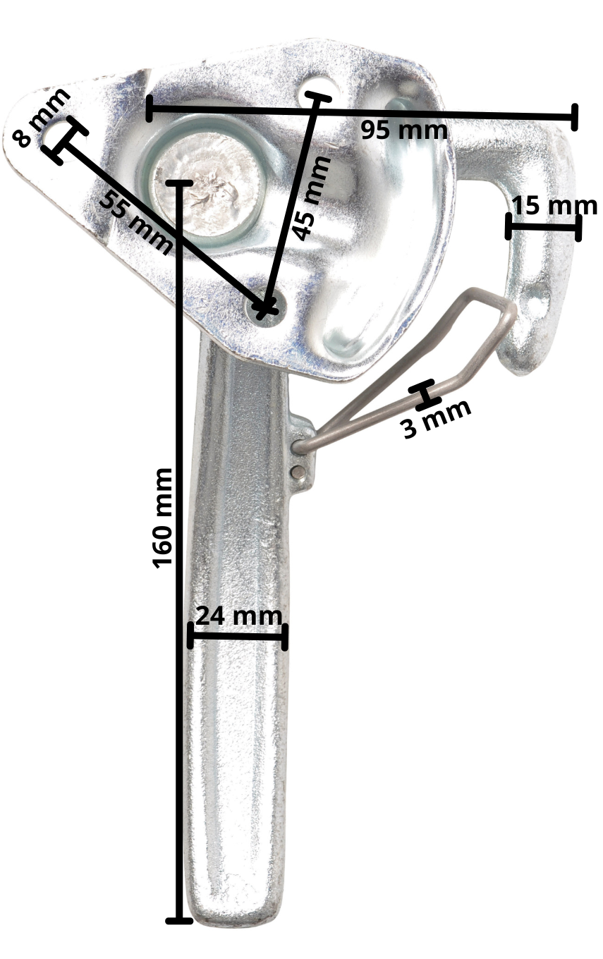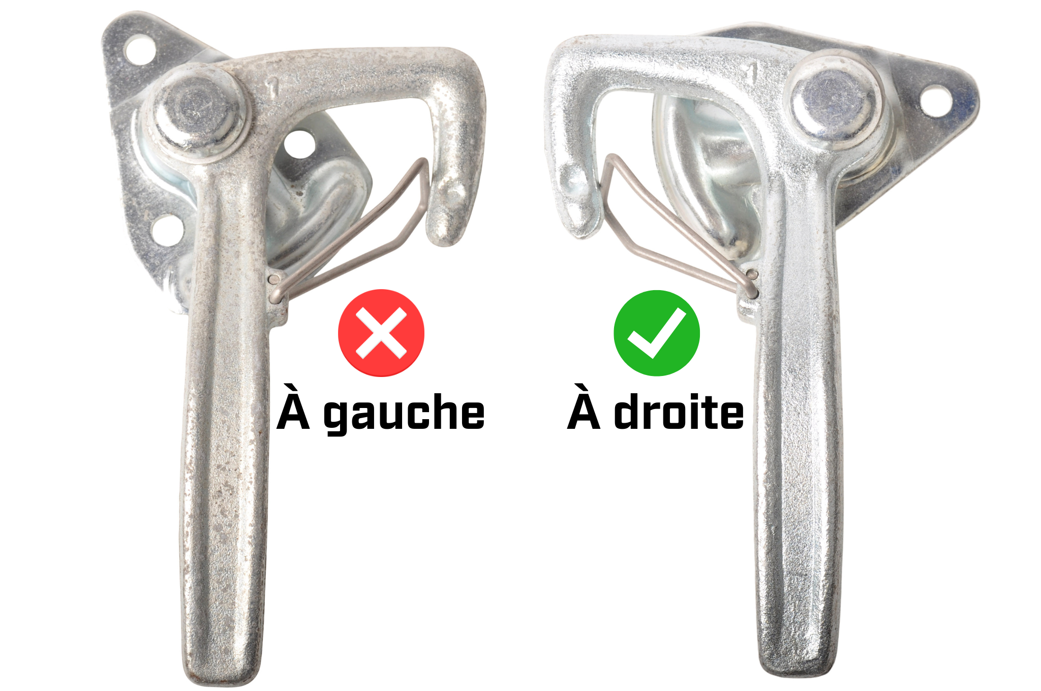 Fermeture à crochet angulaire DROITE grande avec ressort (grande plaque de montage)