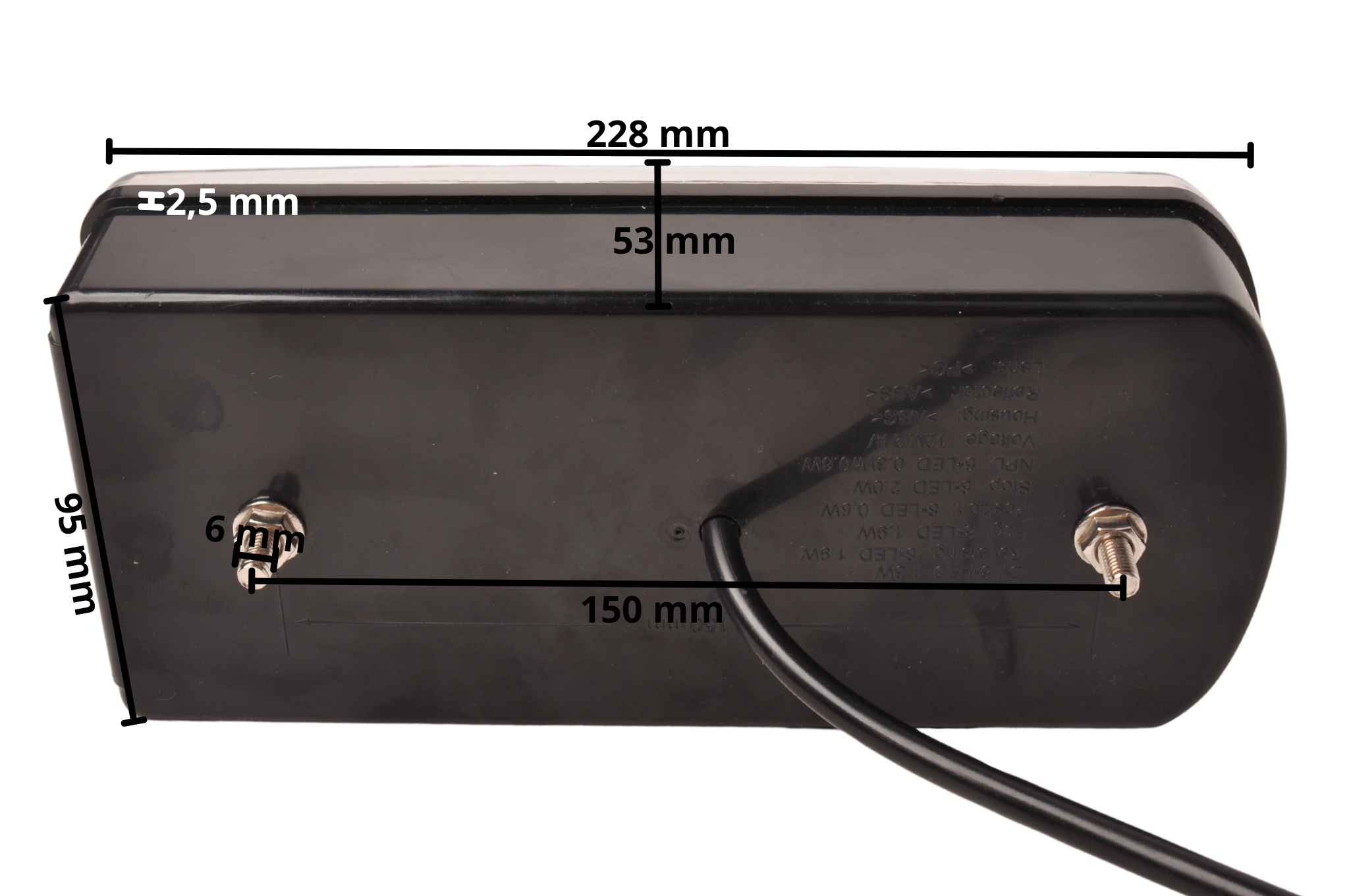 Cette lampe LED a des dimensions de 228x100x53 mm. Ce feu présente toutes les fonctions disponibles d'un feu arrière gauche.