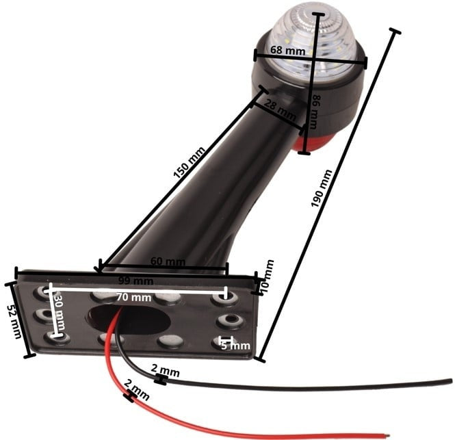 Cet ensemble de 2 feux de gabarit rouge/blanc (19 cm) améliore la visibilité et la sécurité sur la route. Ces feux sont spécialement conçus pour être montés sur des remorques, caravanes, camions et autres véhicules, assurant une indication claire de la largeur du véhicule. Grâce à leur couleur rouge et blanche, ils offrent une bonne visibilité à l'avant comme à l'arrière.