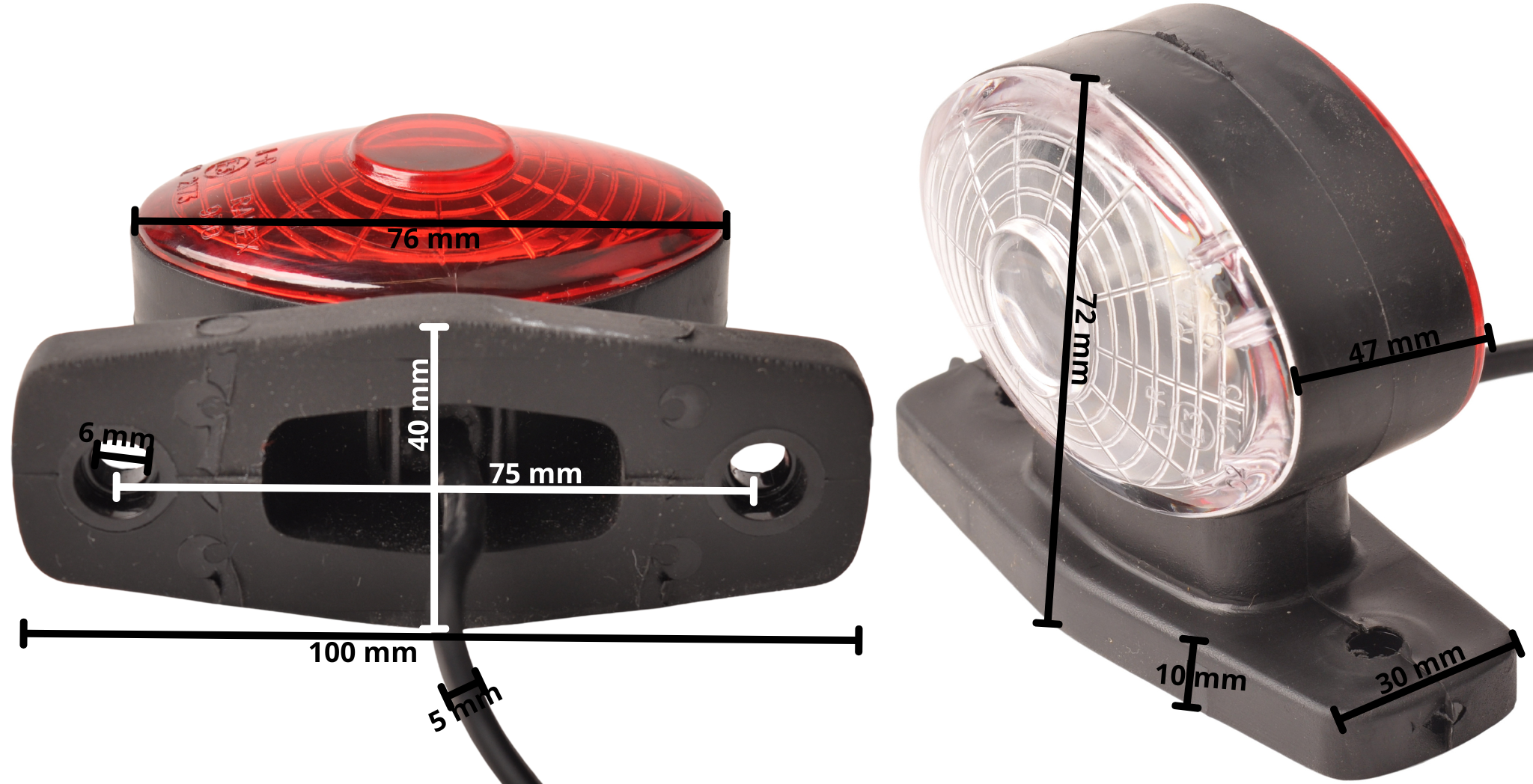 Feu de gabarit semi-circulaire LED gauche/droite 12 Volt