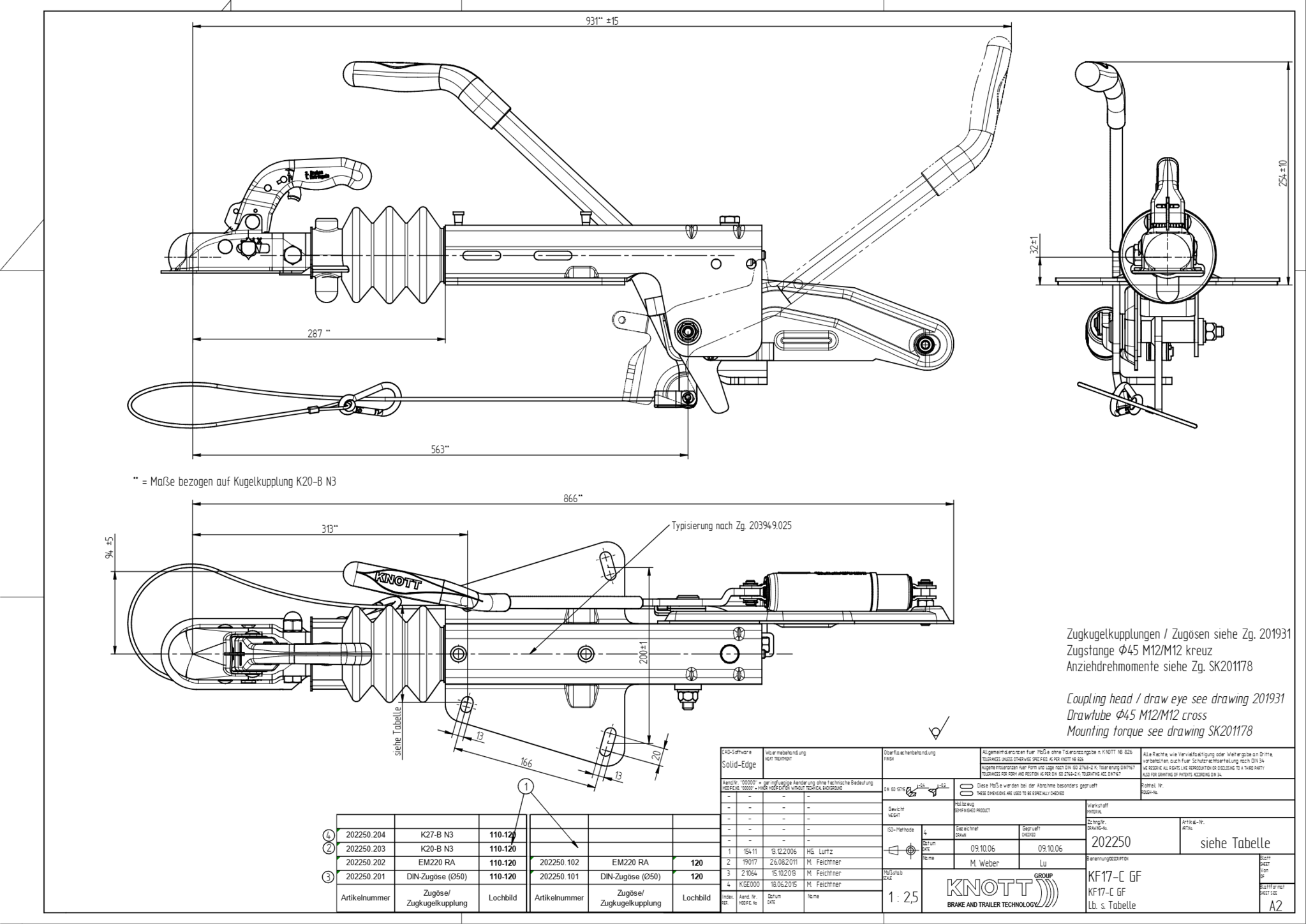 Knott Frein à inertie pour remorque - KF17-C - capacité max : 1700 kg - connexion au timon en V