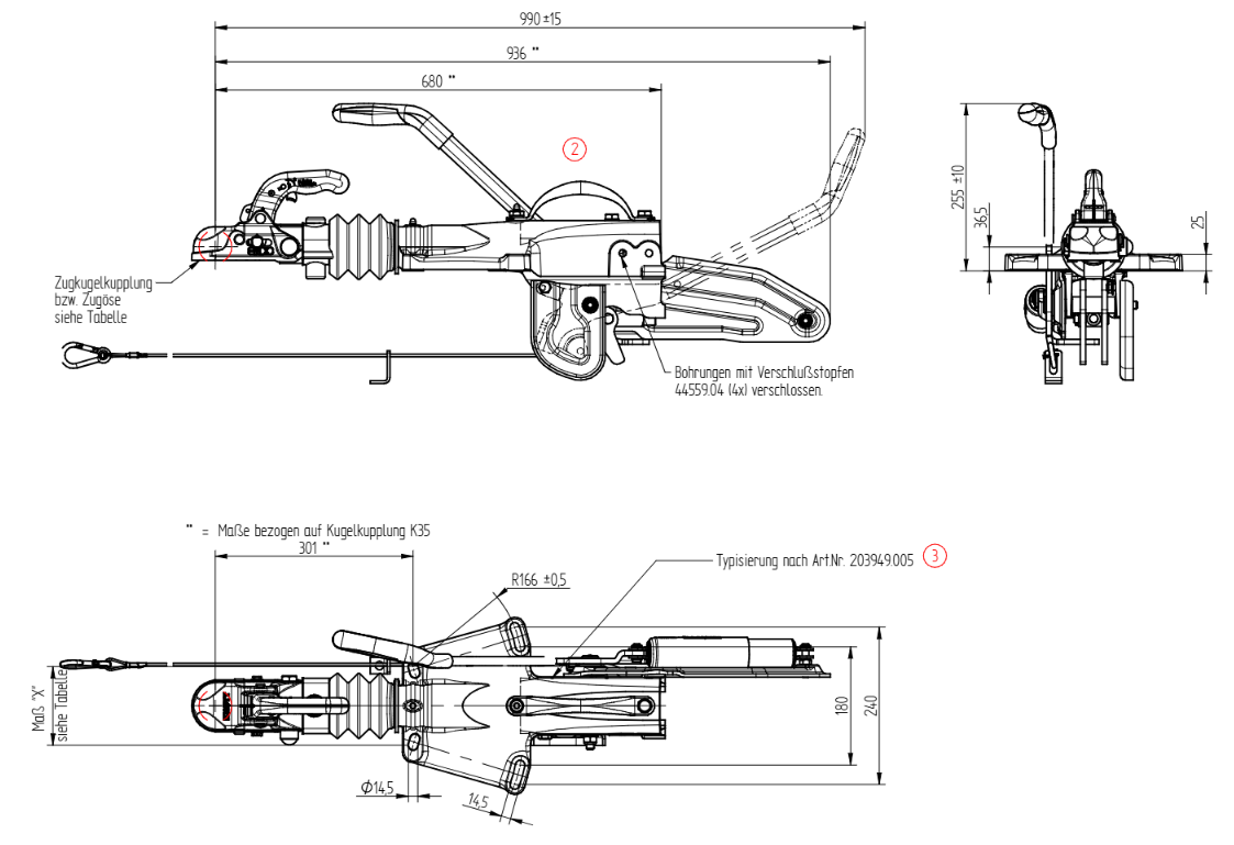 Knott Frein à inertie pour remorque - KFG30 type A - capacité max : 3000 kg - connexion au timon en V – sans console de roue jockey
