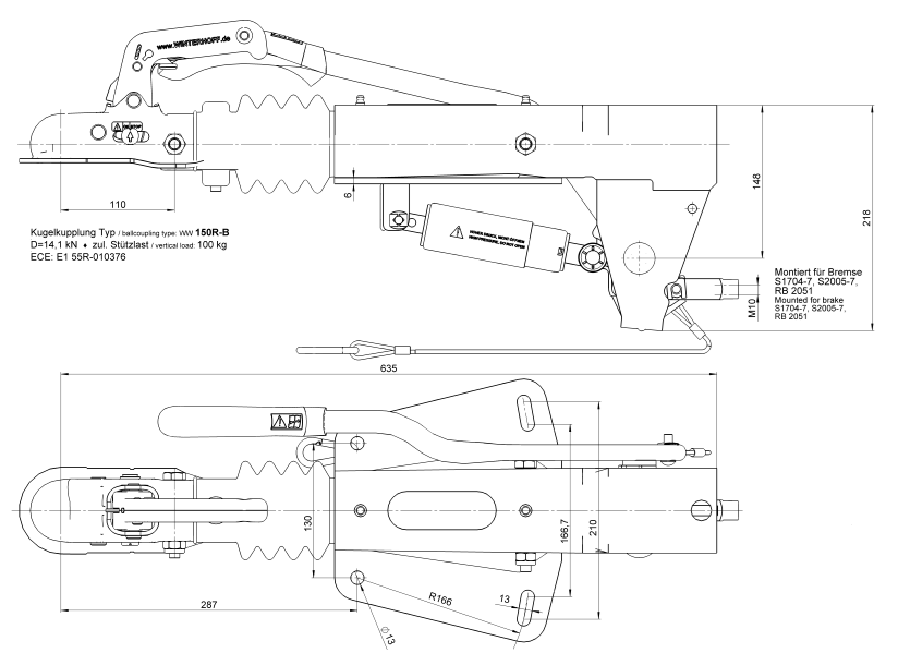BPW Frein à inertie pour remorque - ZAF1,35-3 - capacité max : 1350 kg - connexion au timon en V