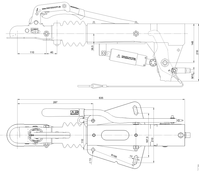 BPW Frein à inertie pour remorque - ZAF1,6-3 - version C - capacité max : 1500 kg - connexion au timon en V