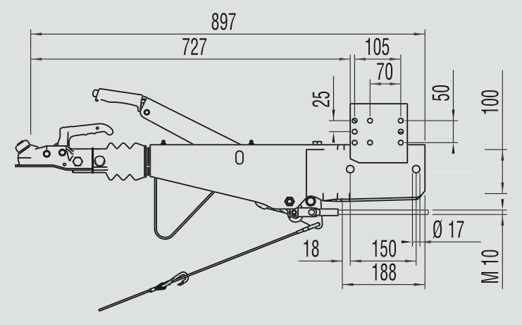AL-KO Frein à inertie pour remorque - 161S - capacité max : 1600 kg - carré 100 mm - y compris la console pour roue jockey