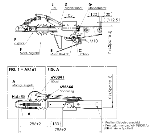 AL-KO Frein à inertie pour remorque - 90S/3-R4 - capacité max : 1000 kg - carré 60 mm - y compris la console pour roue jockey