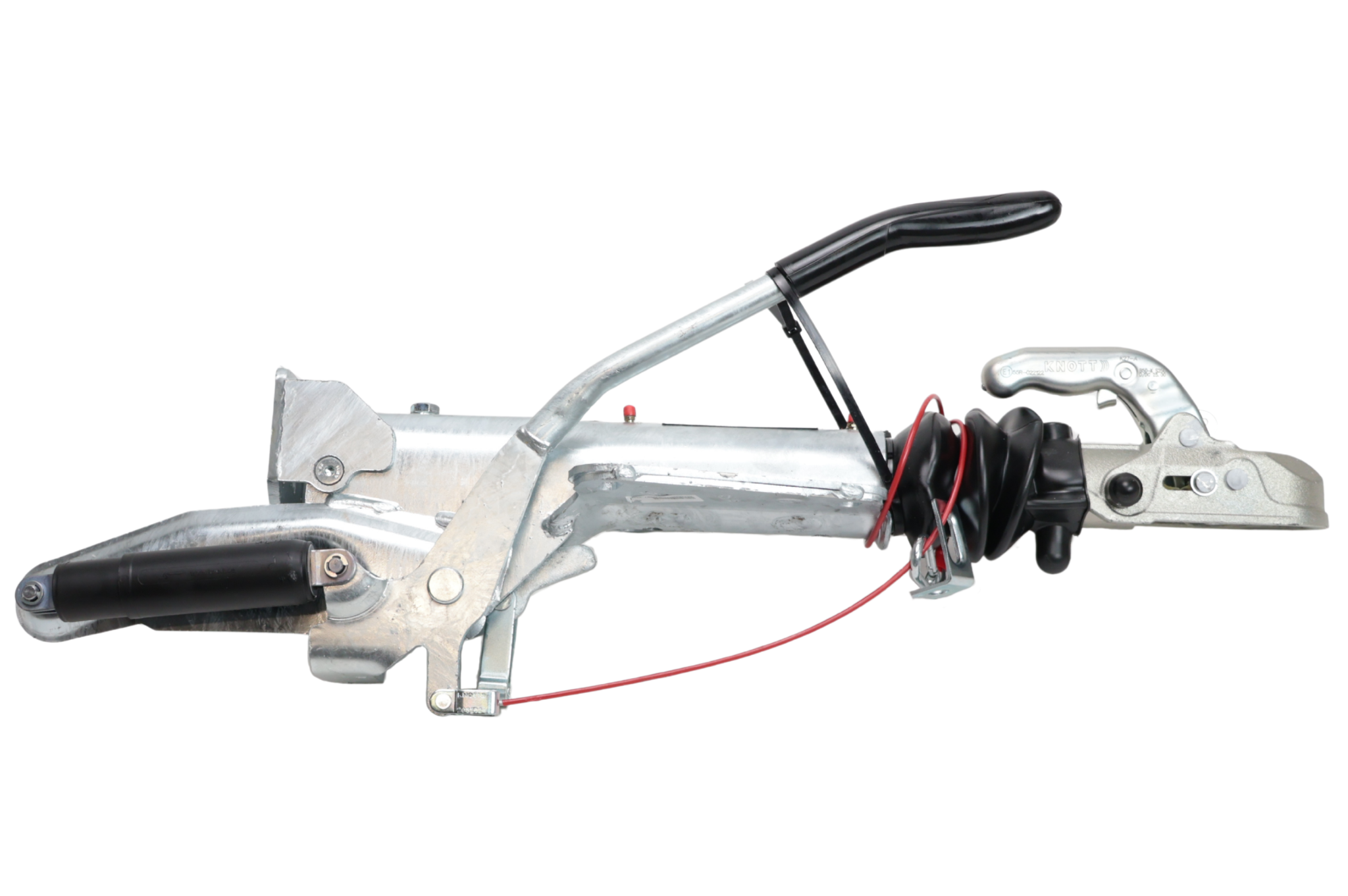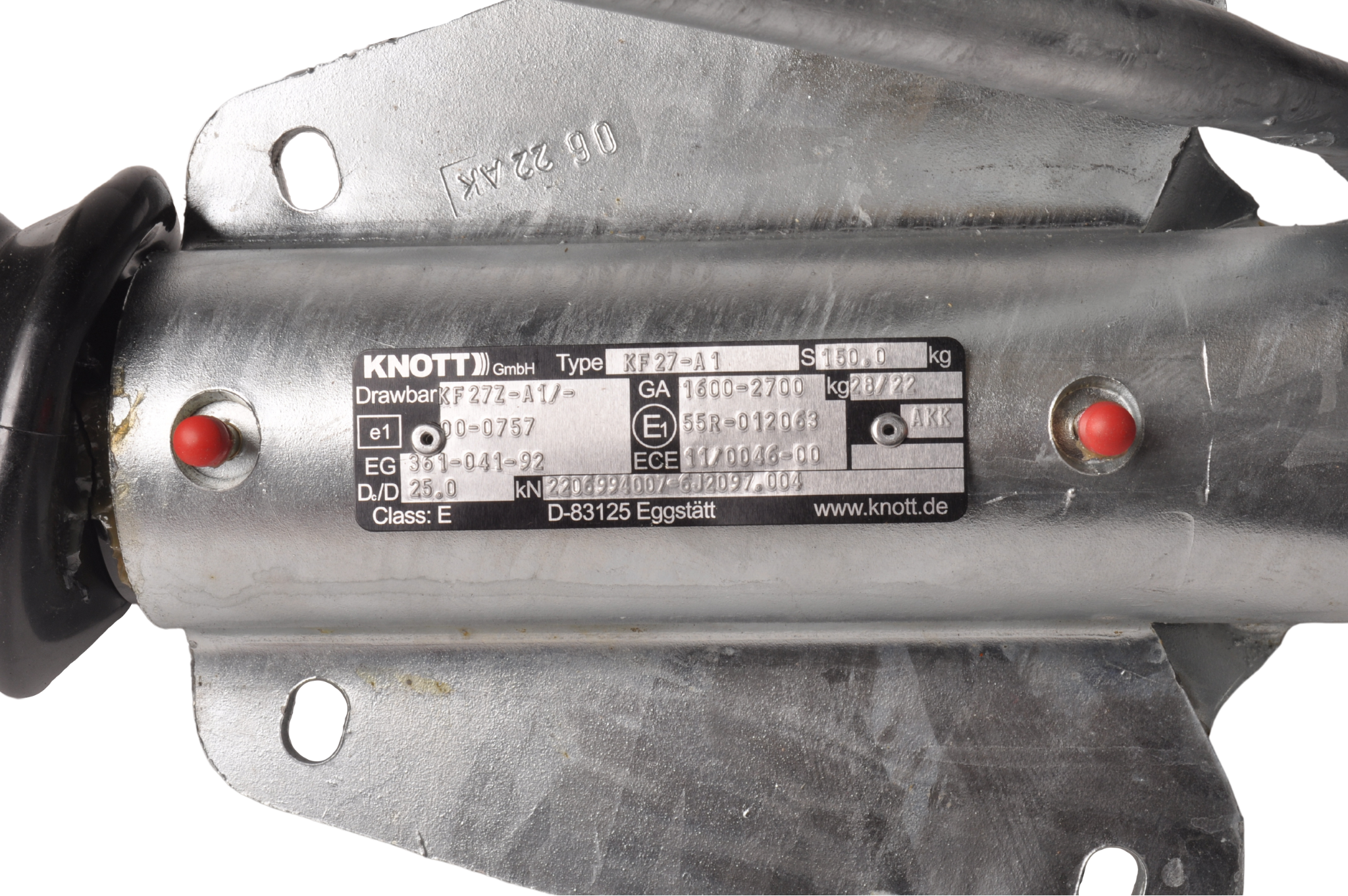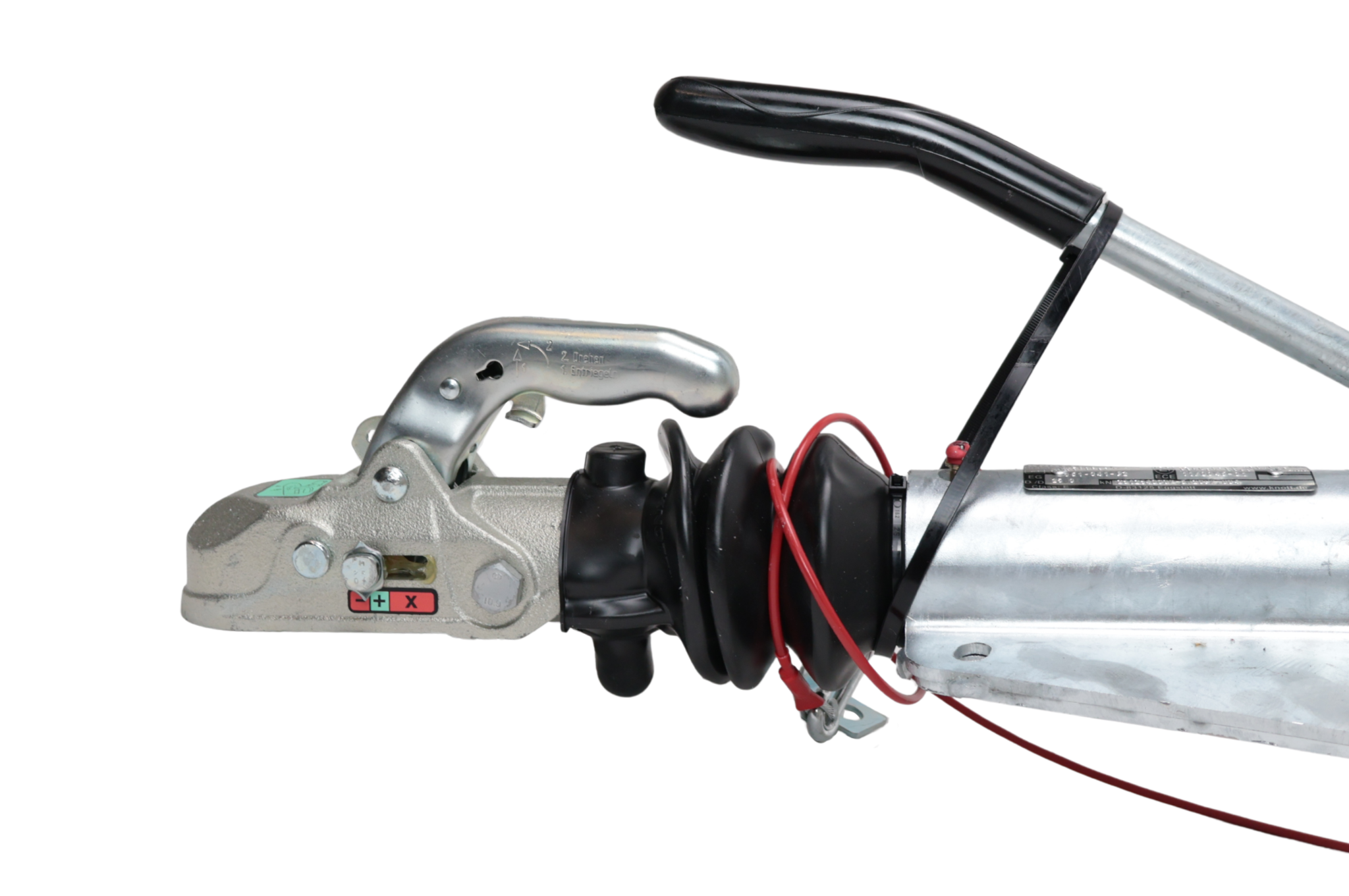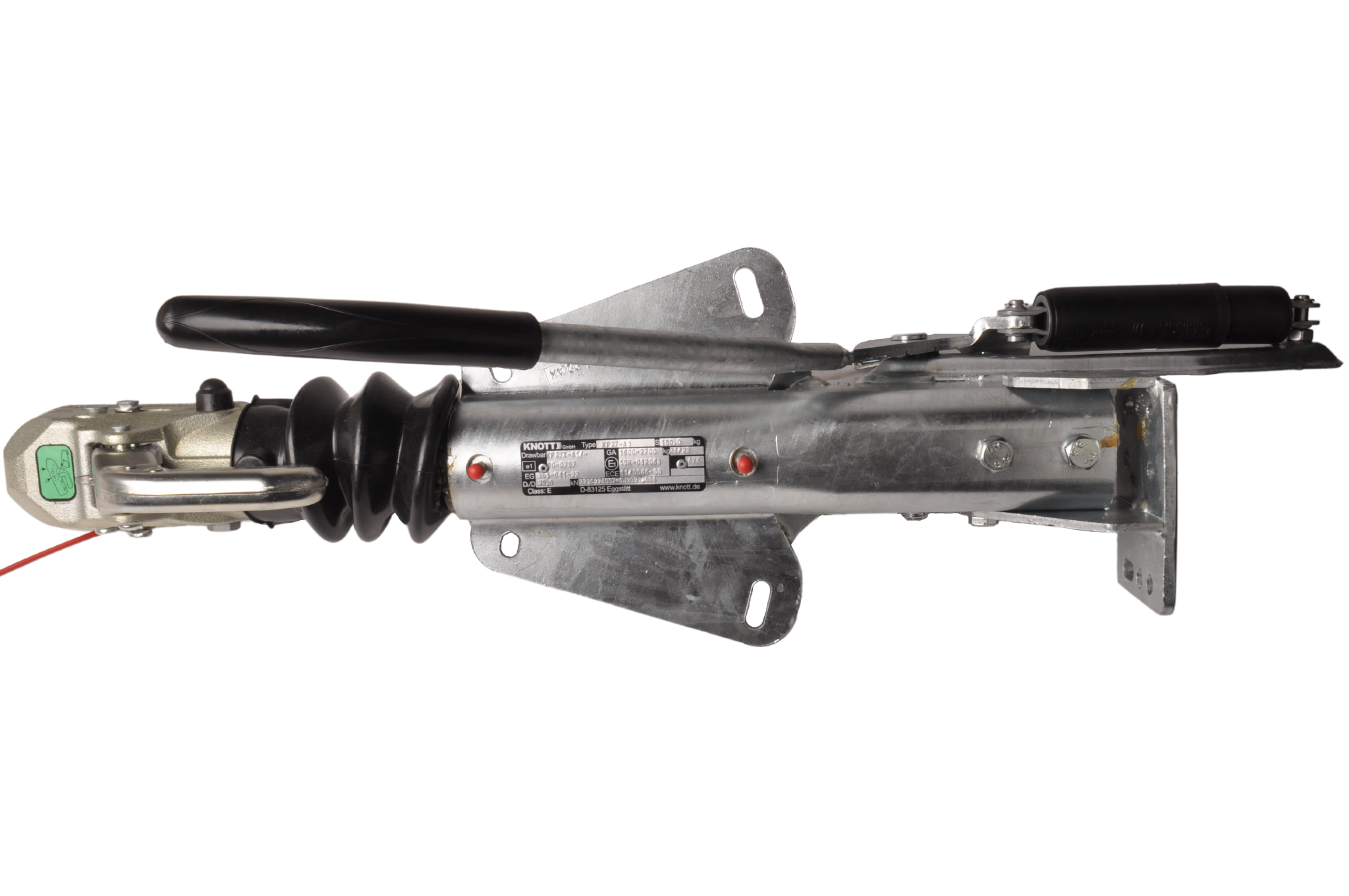 Frein à inertie Knott KF27 avec une capacité de remorquage maximale de pas moins de 2700 kg. Ce frein à inertie est équipé d'un raccord en V avec trous oblongs. Livré en standard avec une console de roue avant.