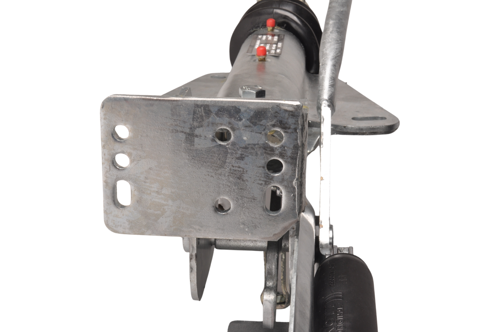Raccordement : Trous oblongs avant Entraxe 110-130 mm. Arrière 2 trous oblongs 180 -220 mm. Distance entre les trous avant et arrière de centre à centre 166 mm. Le raccord de la garniture de frein est M10.