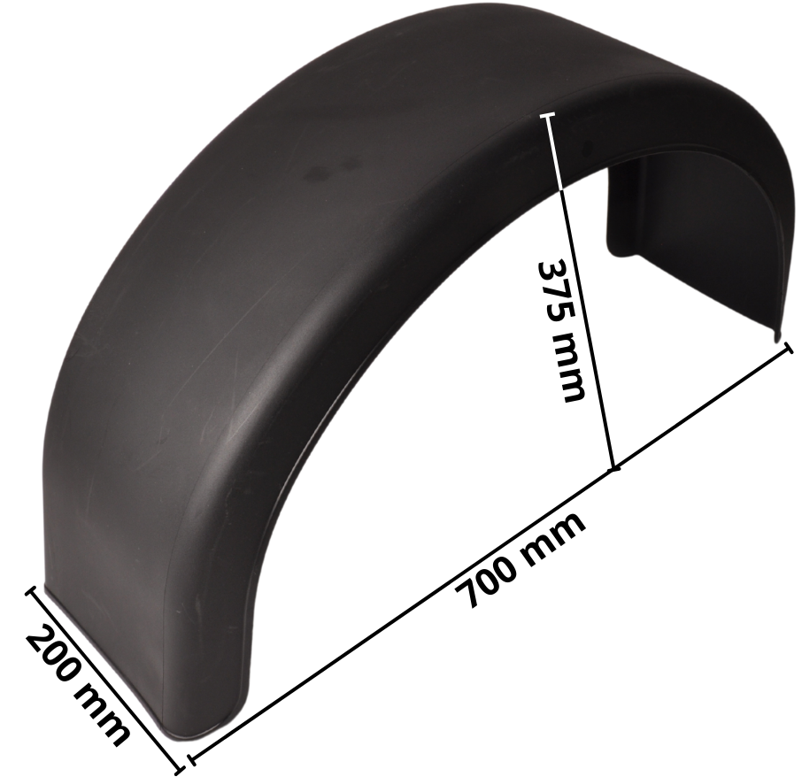 Garde-boue en plastique avec une partie supérieure arrondie. Ce garde-boue de 70 cm de long convient à une remorque à essieu unique. Ce garde-boue en plastique est facile à monter à l'aide des fixations ci-dessous. Ce garde-boue en plastique peut être monté aussi bien sur le côté gauche que sur le côté droit. Ce modèle est très utilisé sur les remorques de bateaux.