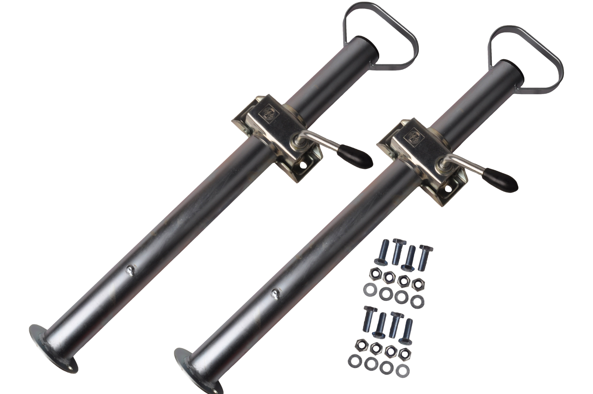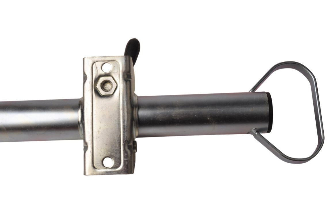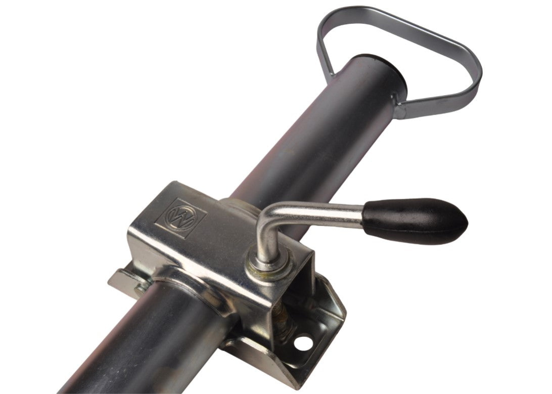 Le kit est livré de série avec deux colliers de fixation robustes et deux jeux de matériel de montage, ce qui permet une installation simple et immédiate. Les colliers ont une largeur de 130 mm et un entraxe de 105 mm, avec des trous de perçage de 11 mm et un diamètre de filetage de 12 mm. Grâce à une charge maximale sur timon de 250 kg, les colliers assurent une fixation fiable et solide sur le châssis. En bref : un kit de béquilles complet pour remorque ou caravane, qui apporte plus de sécurité, de stabilité et de confort d’utilisation, aussi bien en déplacement qu’à l’atelier ou sur l’allée.