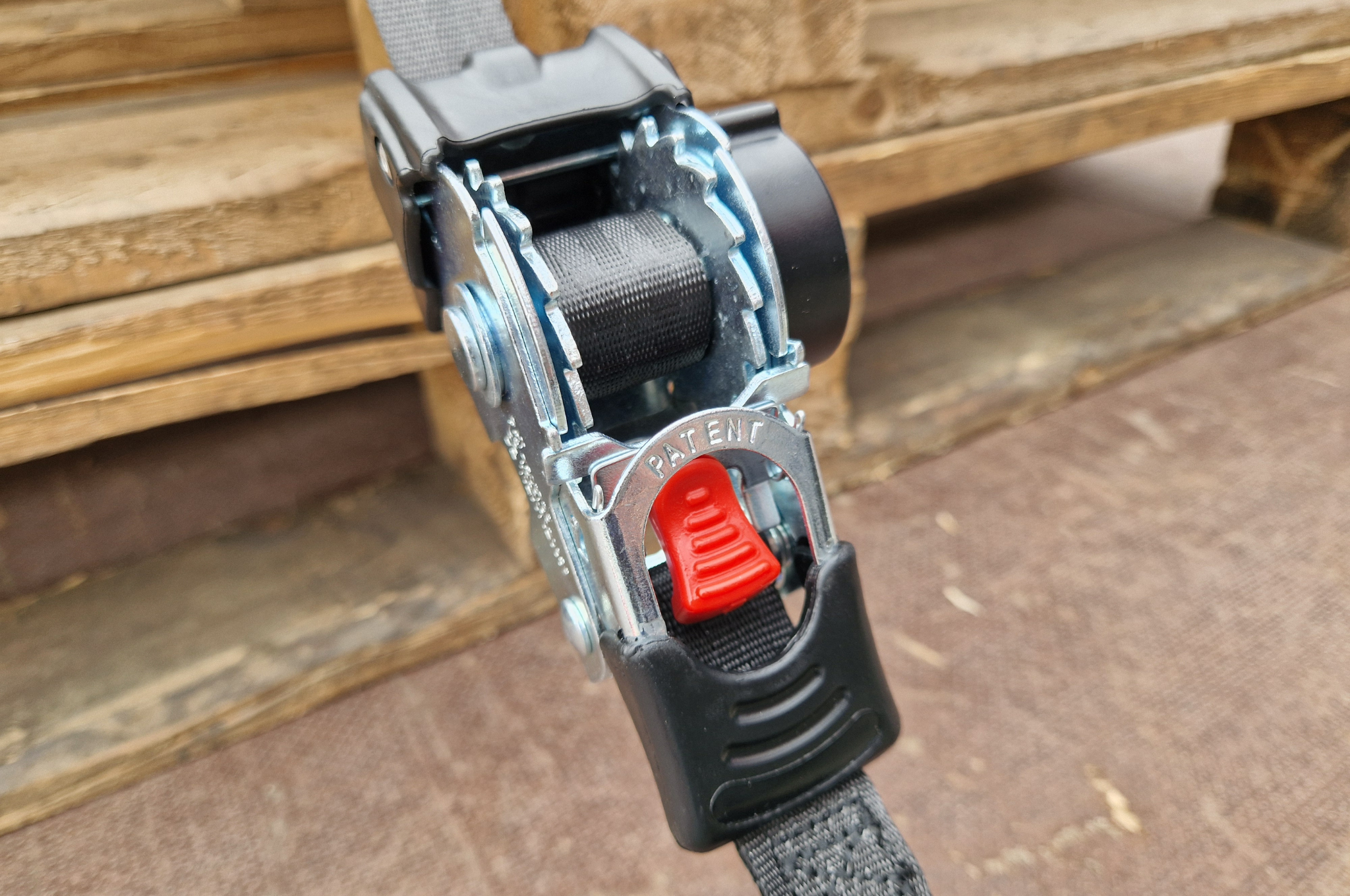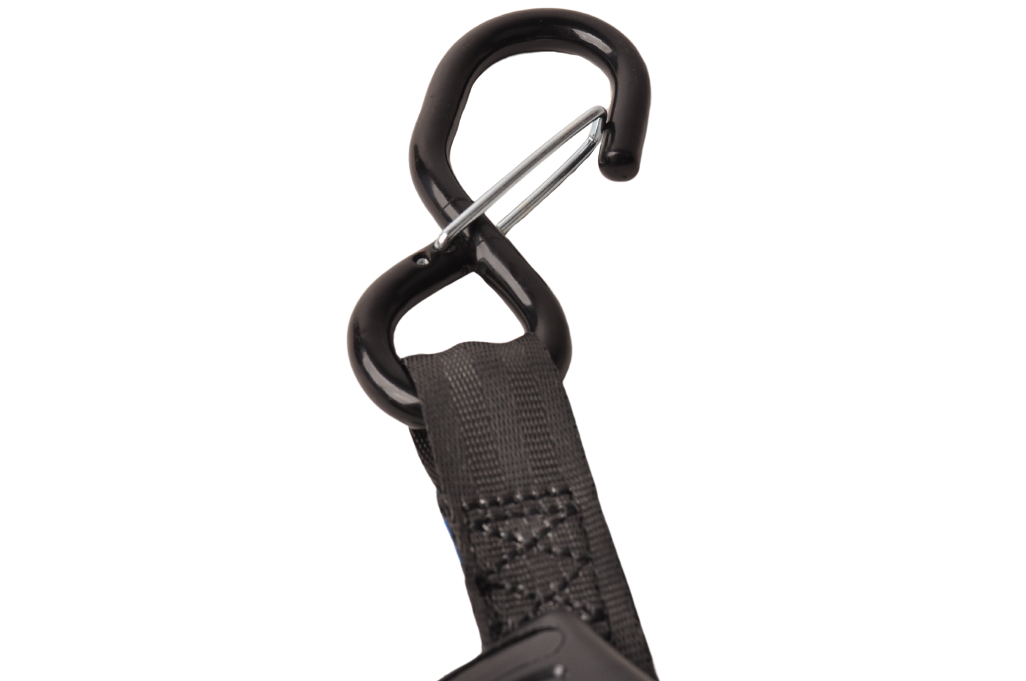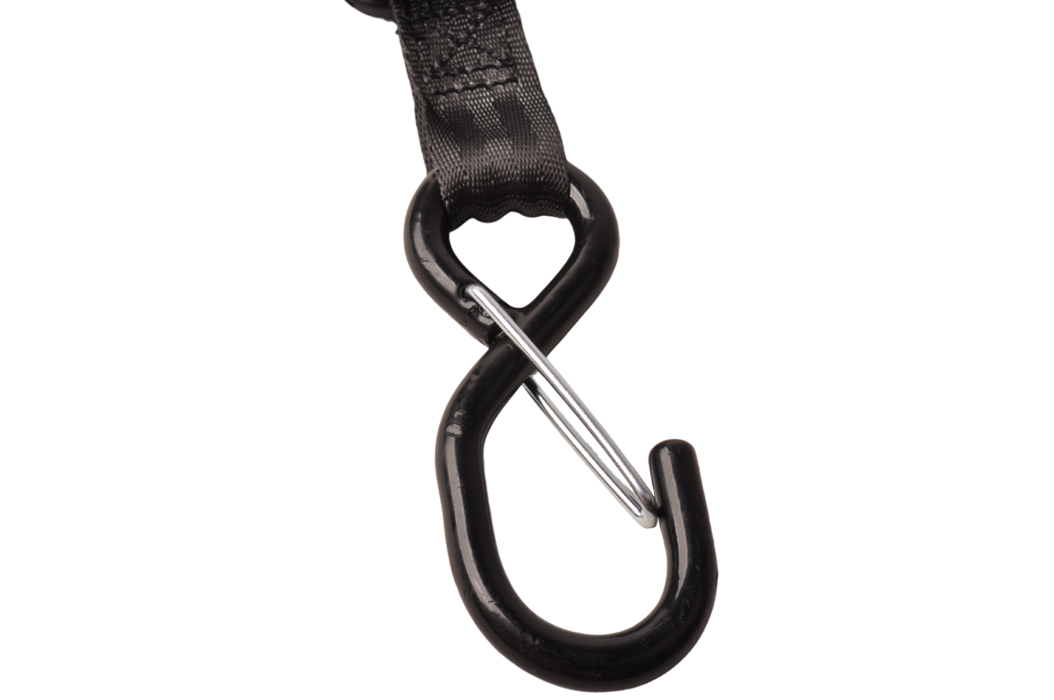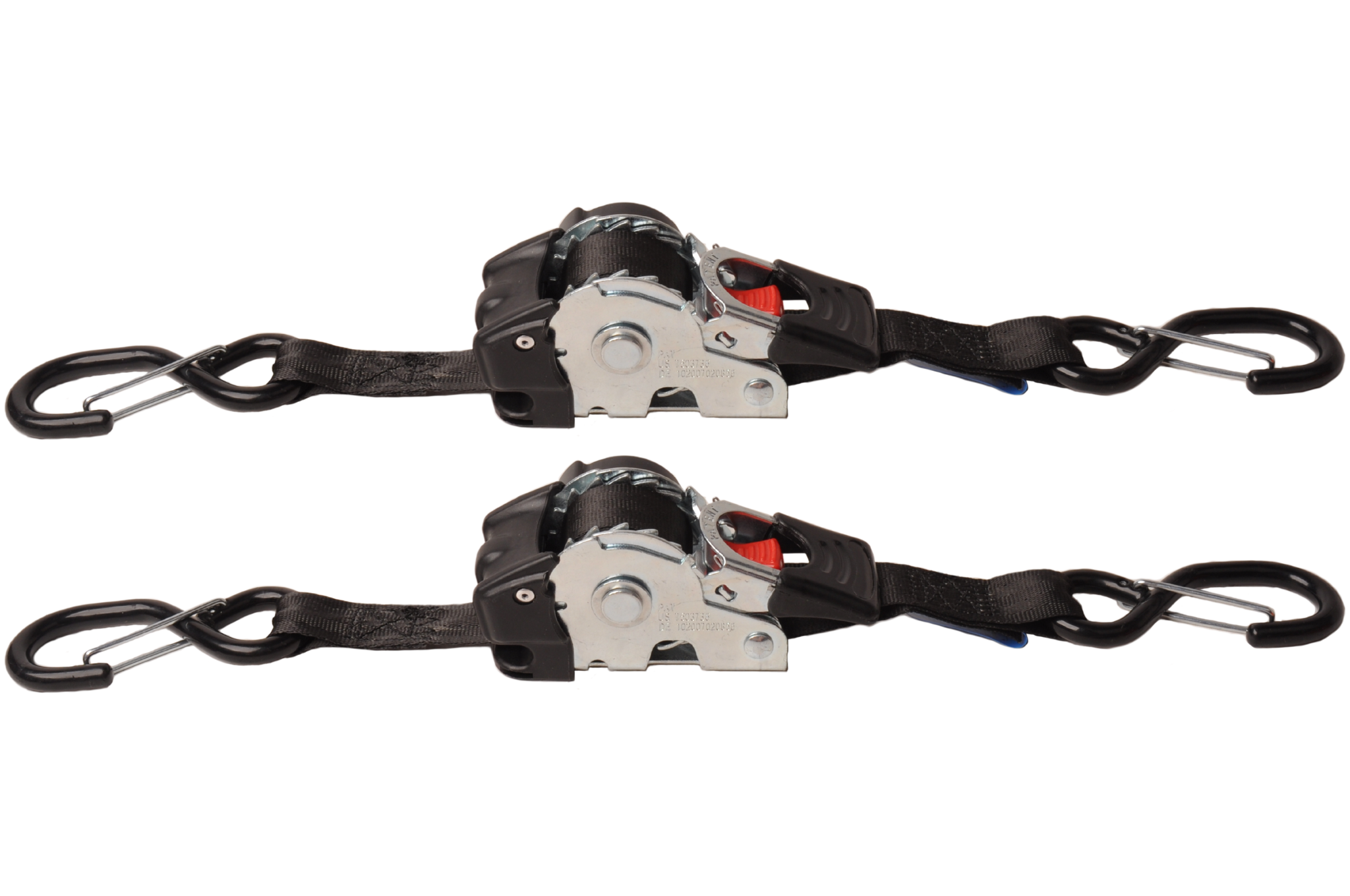 Lot de 2 sangles d'arrimage automatique - 180x2,5 cm - charge de rupture 600 kg - avec crochets en S et clips de sécurité