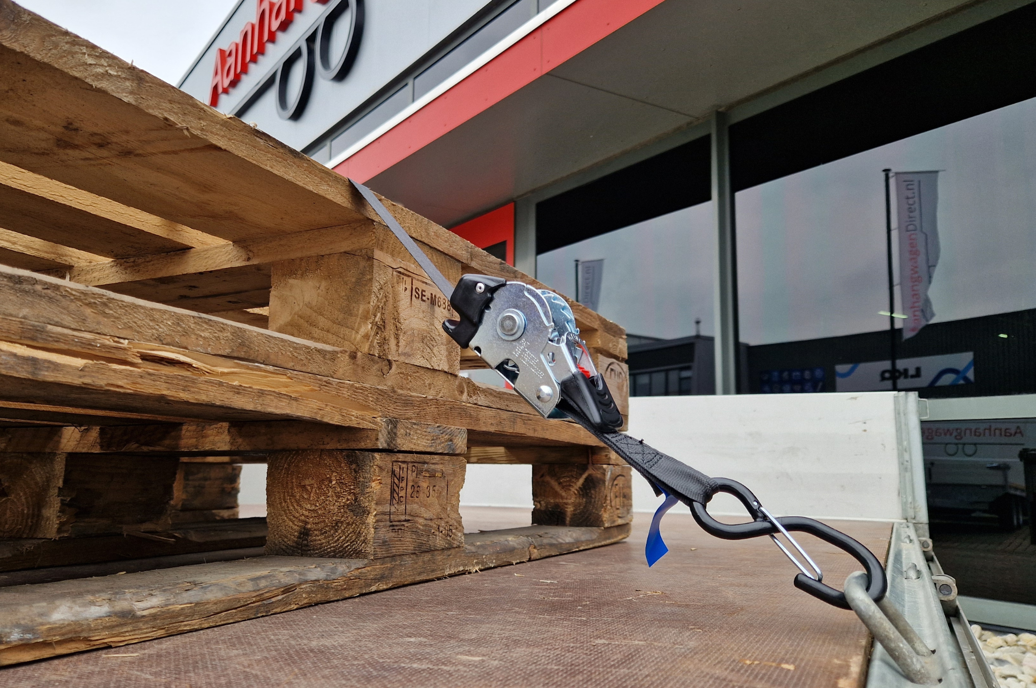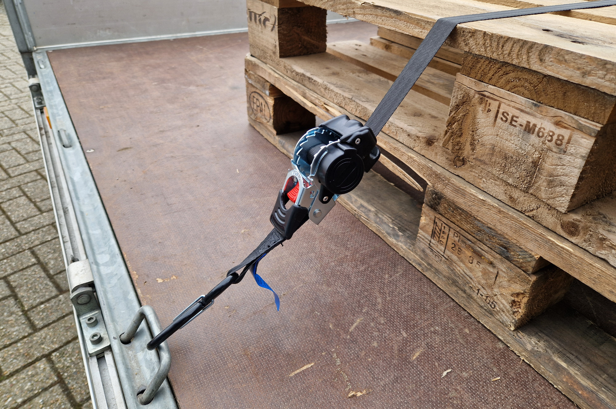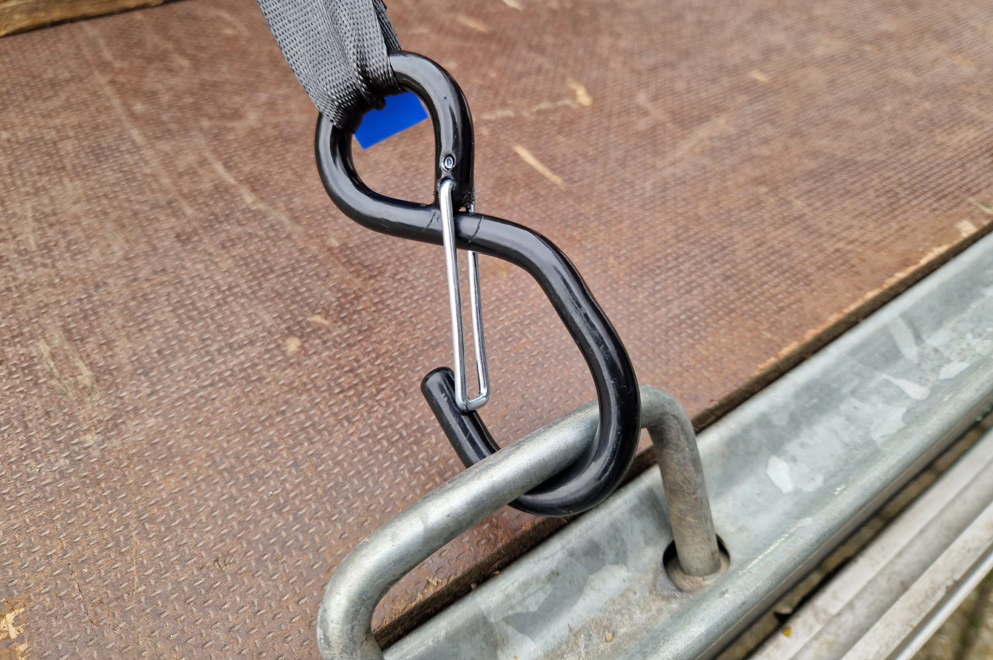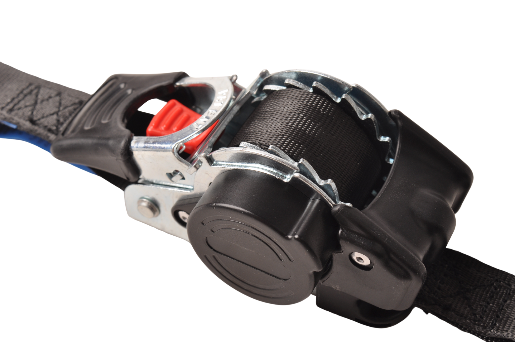 Lot de 2 sangles d'arrimage automatique - 180x2,5 cm - charge de rupture 600 kg - avec crochets en S et clips de sécurité