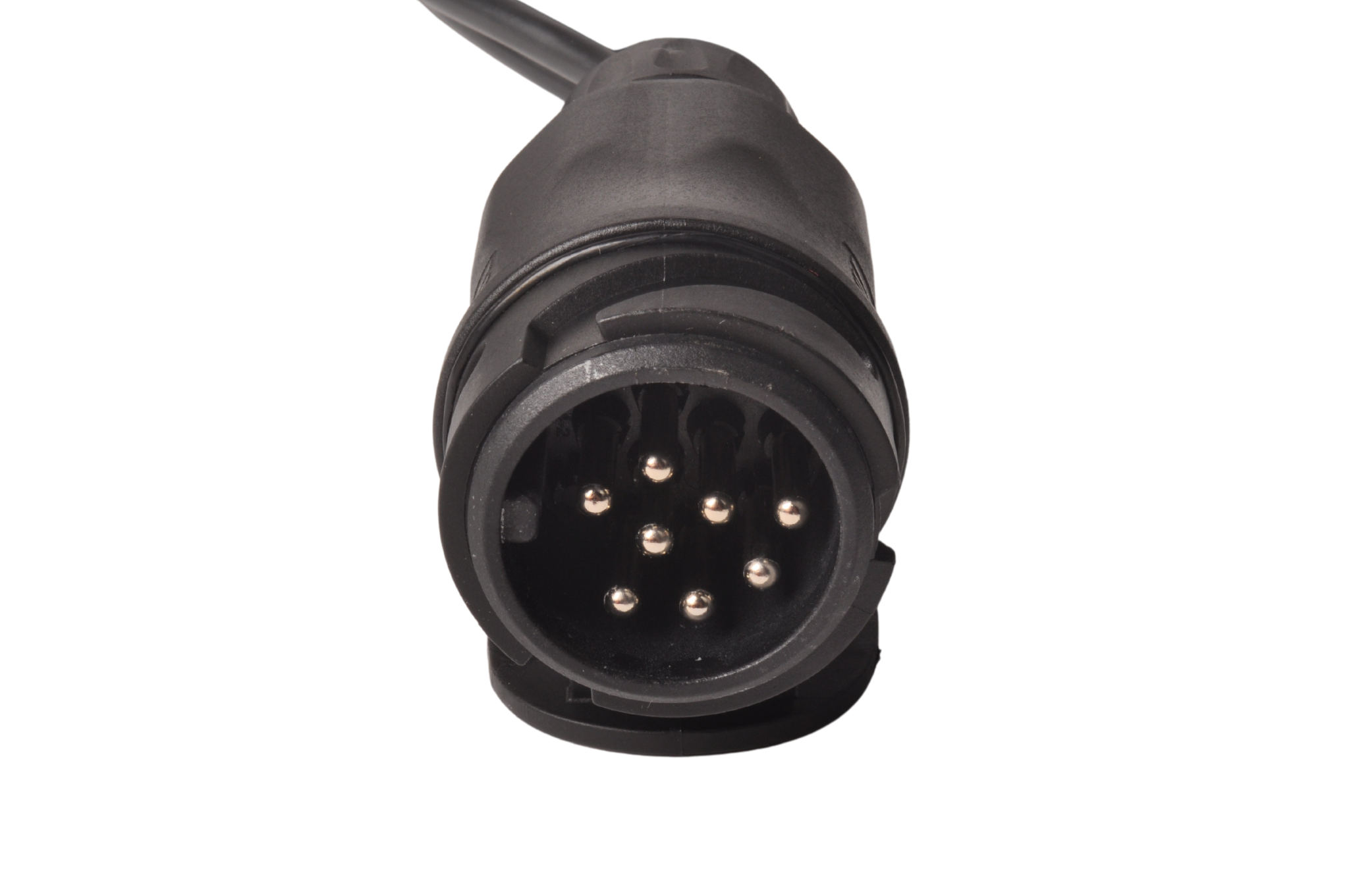 La fiche du câble principal a une connexion à 13 broches pour une prise standard Jaeger du véhicule et au total 8 fonctions incluant la lumière de recul. La fiche (avec 8 broches) s'adapte donc à la prise Jaeger standard à 13 broches.