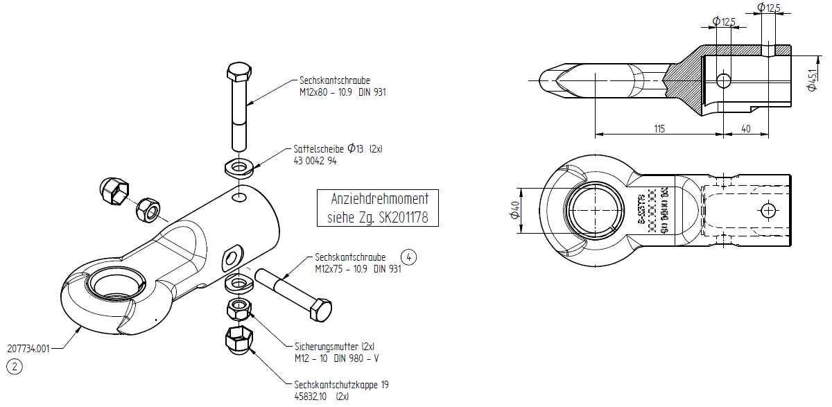 Knott KF7,5 – KF20 – œillet DIN / œillet de traction – rond 45 mm – 2000 kg