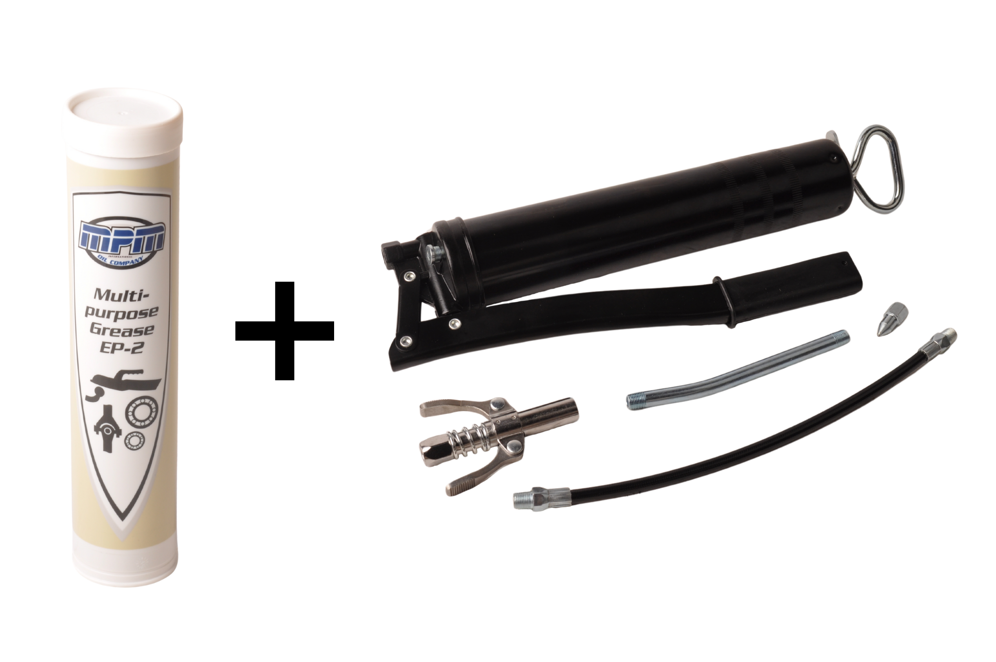 Ce kit de graissage professionnel est idéal pour lubrifier les roues jockey, les freins à inertie et d'autres pièces rotatives équipées d’un graisseur. Le set comprend un pistolet à graisse de haute qualité, compatible avec des cartouches de graisse standard et doté d’un tube rigide pour une application précise. Un tuyau flexible est également inclus, ce qui permet d’atteindre facilement les zones difficiles d’accès. La cartouche de graisse MPM Oil EP2 (400 g) fournie est d’usage universel et, grâce à ses additifs EP spéciaux, particulièrement adaptée aux fortes pressions de roulement et aux charges élevées. Cette graisse adhère fortement, résiste aux hautes températures et repousse l’eau – assurant ainsi une protection optimale et une lubrification durable de vos composants.