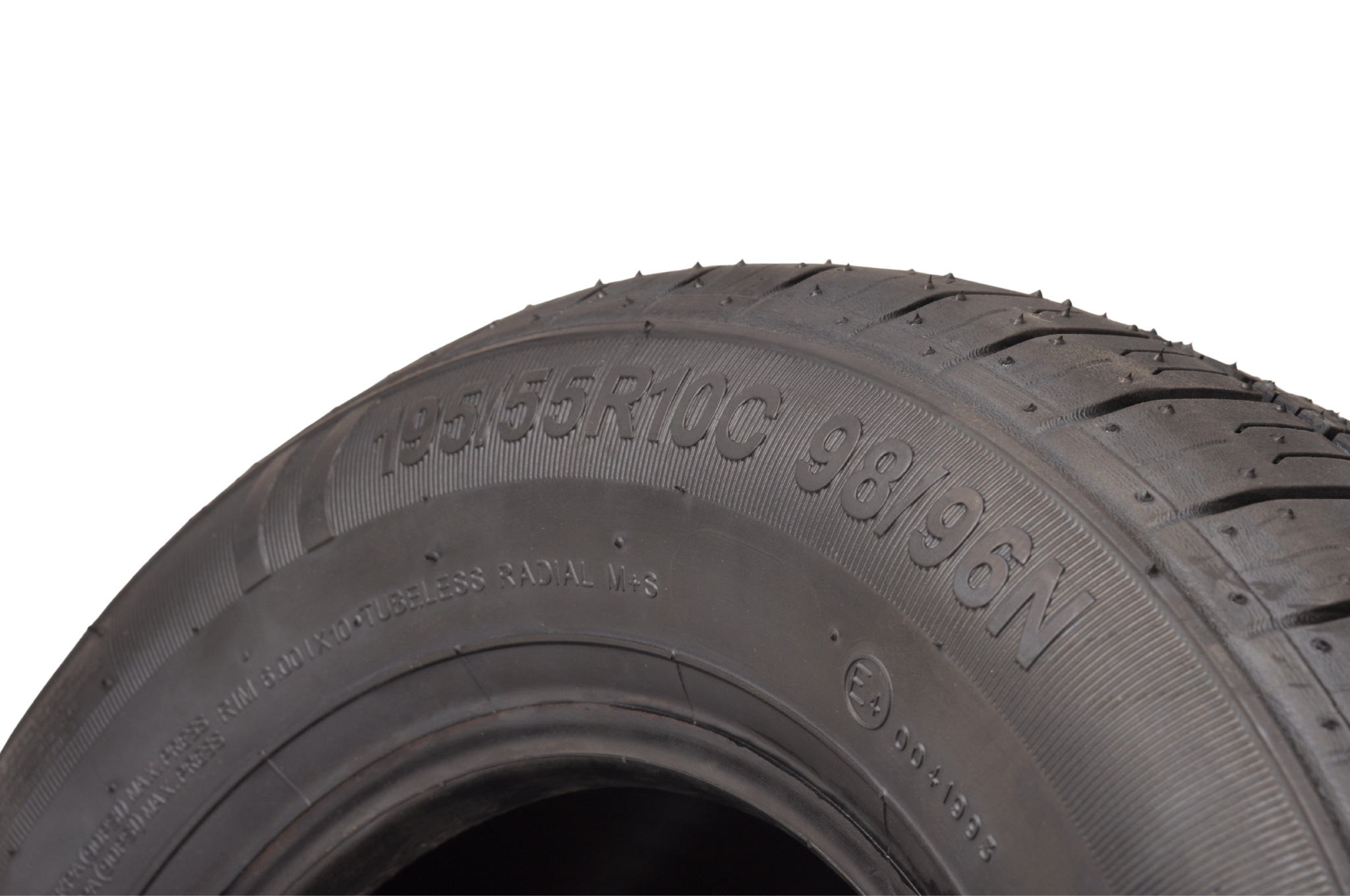 Pneu sans chambre à air - 195/55R10C - capacité de charge : 750 kg - 10PR