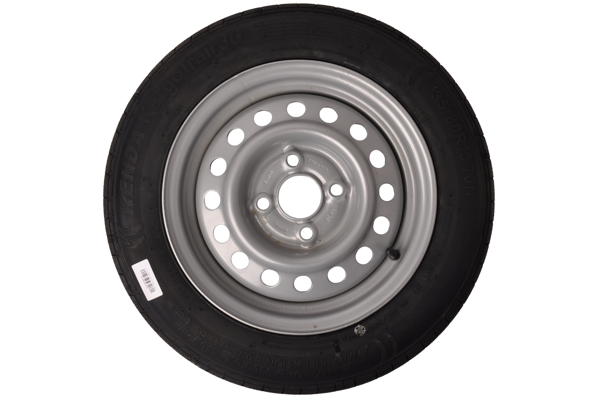 Cette roue complète de 13 pouces avec un pneu de taille 135/80 a une capacité de charge maximale de 335 kg. Le diamètre total de cette roue est de 55,4 cm et sa largeur totale est de 13,5 cm. La jante a un entraxe de 4x100 mm.