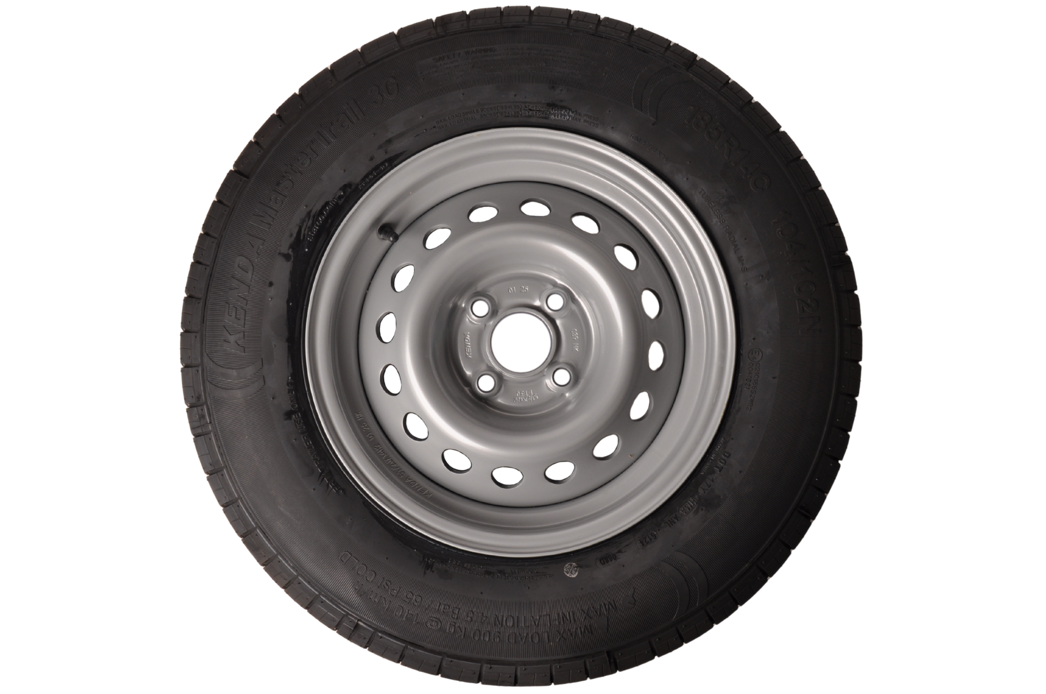 Données techniques : Roue complète de remorque - 185R14C - entraxe : 4x100 - capacité de charge : 750 kg - diamètre du moyeu : 57 mm