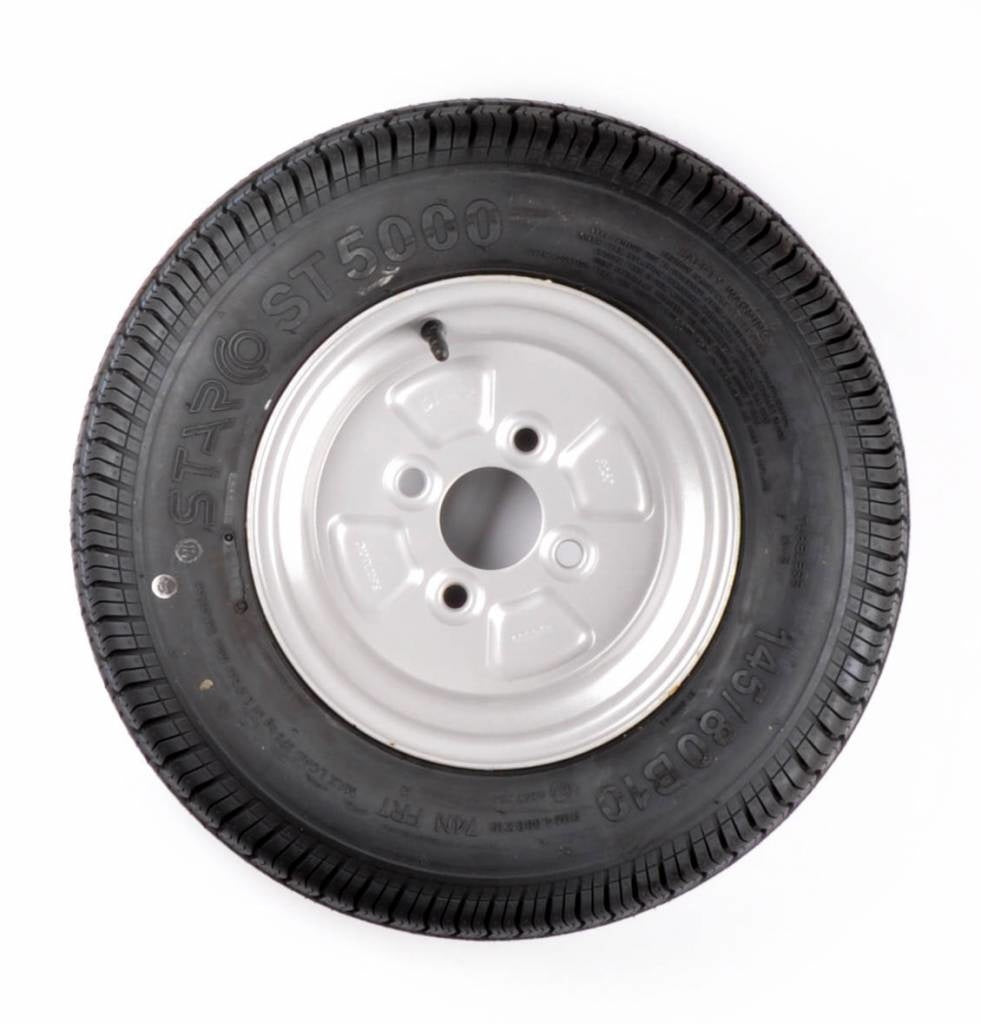 Roue complète de remorque - 145/80R10(145R10) - entraxe : 4x100 - capacité de charge : 375 kg - diamètre du moyeu : 57 mm - 4PR