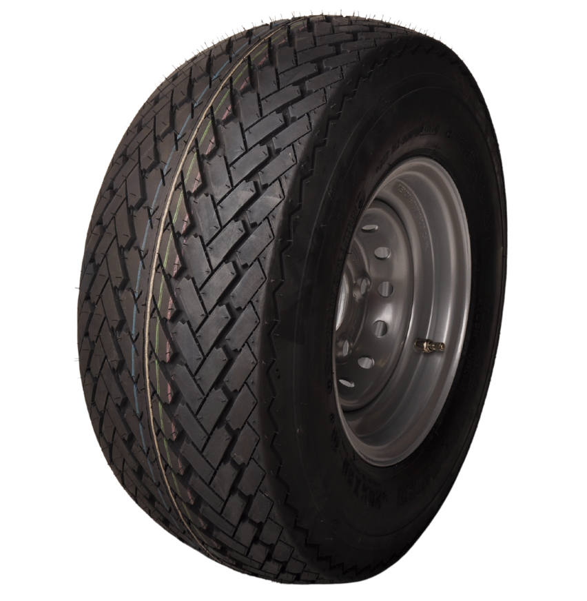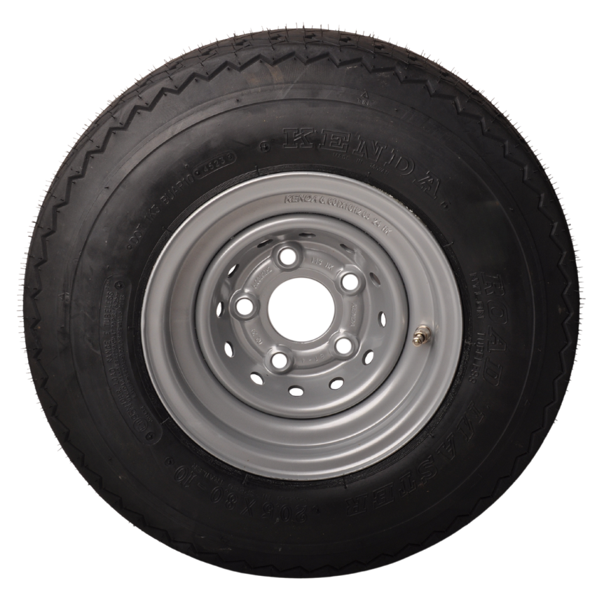 Ce roue de remorque complet de 10 pouces avec la taille de pneu 20.5x8.00 est largement utilisé pour les caravanes pliantes et les petites remorques. Le diamètre complet de cette roue est de 53,7 cm et la largeur totale est de 20,7 cm. La jante a un entraxe de 5x112 mm.
