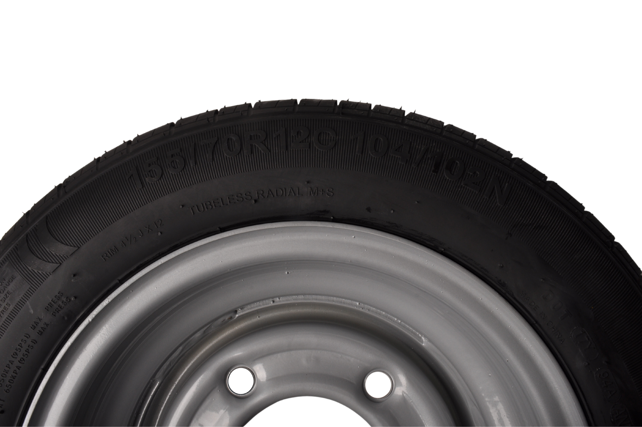 Roue complète de remorque - 155/70R12C - entraxe : 5x165,1 - capacité de charge : 900 kg - diamètre du moyeu : 114,6 mm