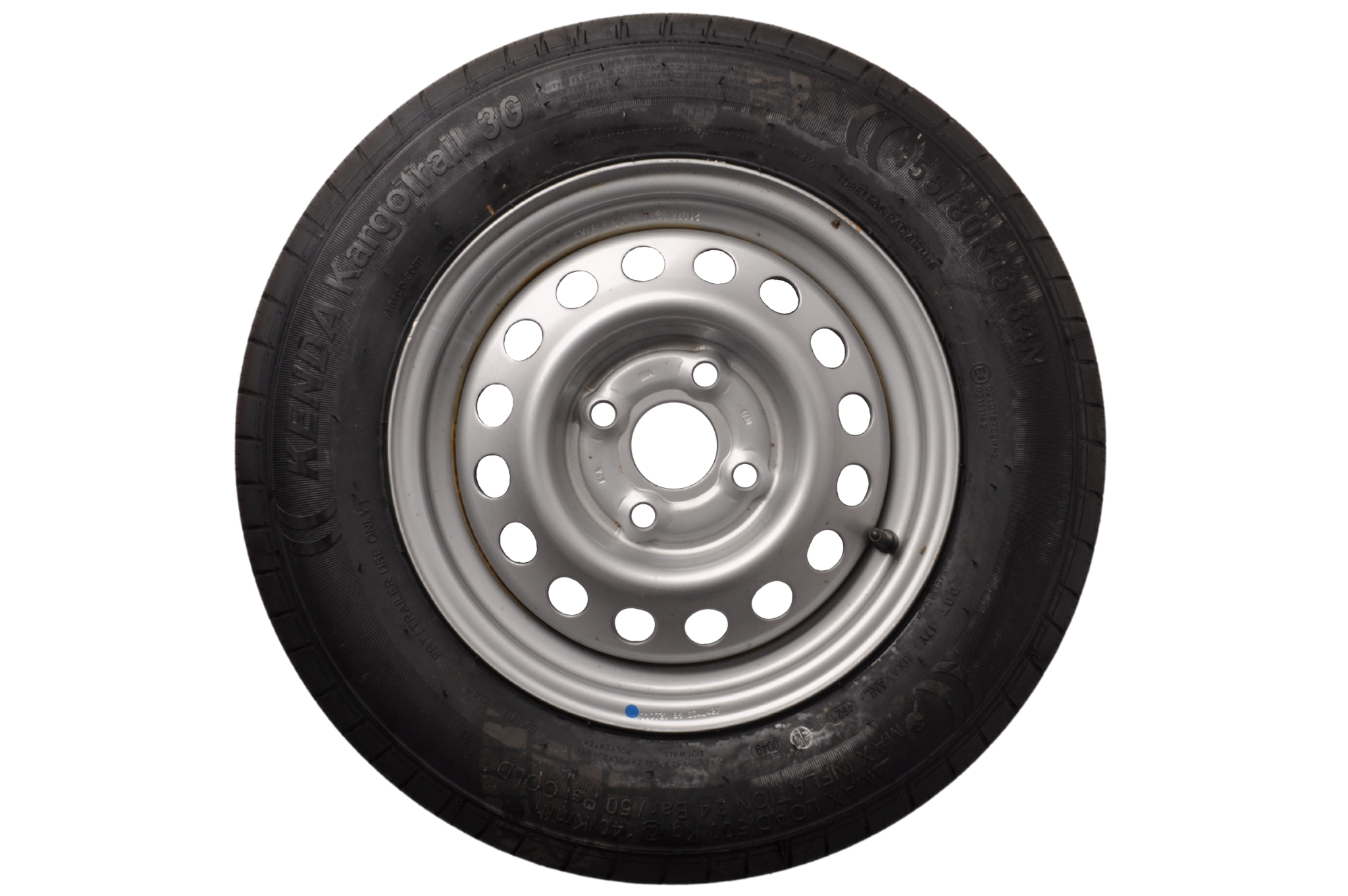 Données techniques : Roue complète de remorque - 155R13 - entraxe : 4x100 - capacité de charge : 500 kg - diamètre du moyeu : 57 mm