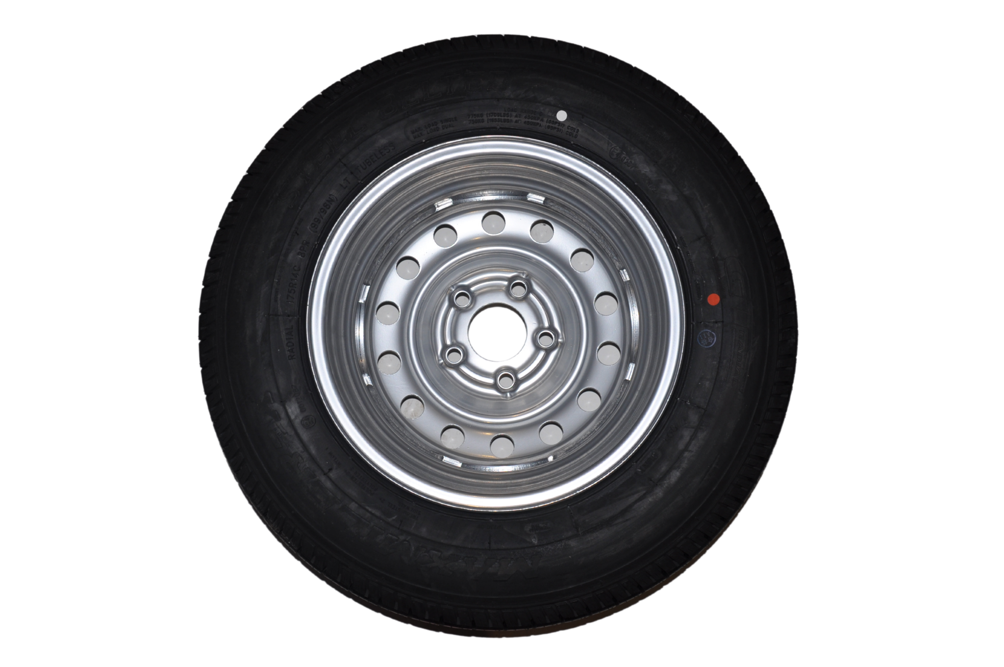Données techniques : Roue complète de remorque - 175/80R14C - entraxe : 5x112 - capacité de charge : 775 kg - diamètre du moyeu : 67 mm
