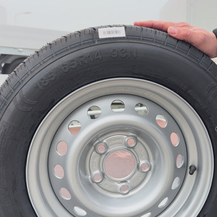 Données techniques : Roue complète de remorque - 185/65R14 - entraxe : 5x112 - capacité de charge : 650kg - diamètre du moyeu : 67 mm