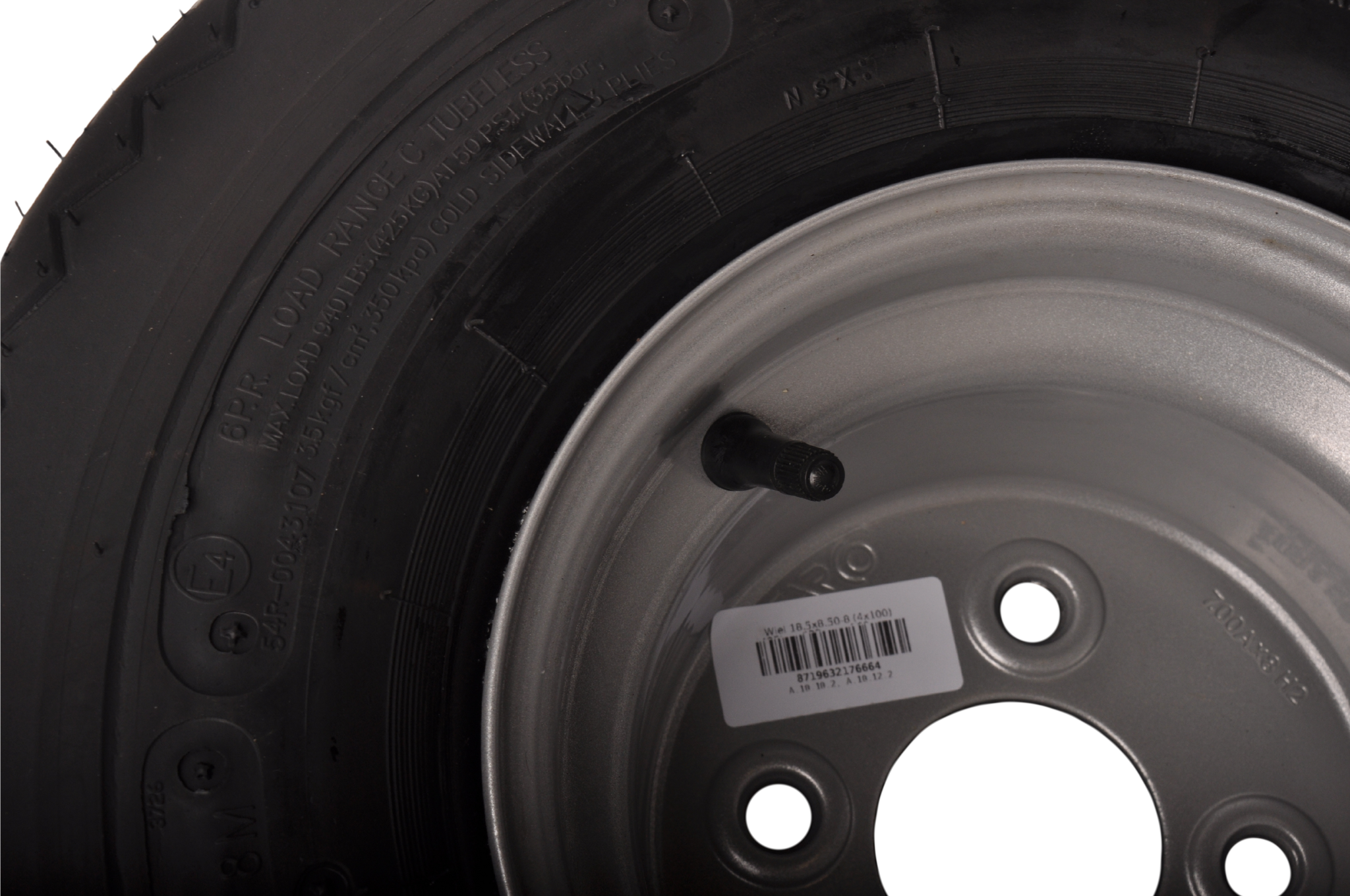 Roue complète de remorque - 18.5x8.50-8 - entraxe : 4x100 - capacité de charge : 425 kg - diamètre du moyeu : 57 mm - 6PR