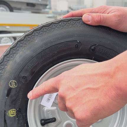 Roue complète de remorque - 4.00-8 - entraxe : 4x100 - capacité de charge : 265 kg - diamètre du moyeu : 57 mm - 4PR