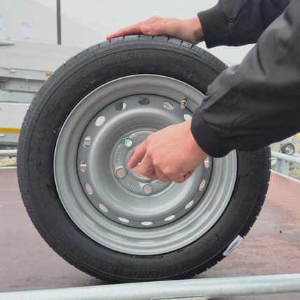 Ce roue de remorque complet de 13 pouces avec une taille de pneu de 195/50R13C est largement utilisé sur les remorques en raison de sa capacité de charge maximale de 900 kg. Le diamètre complet de cette roue est de 52,6 cm et sa largeur totale est de 19,5 cm. La jante a un entraxe de 5x112 mm.