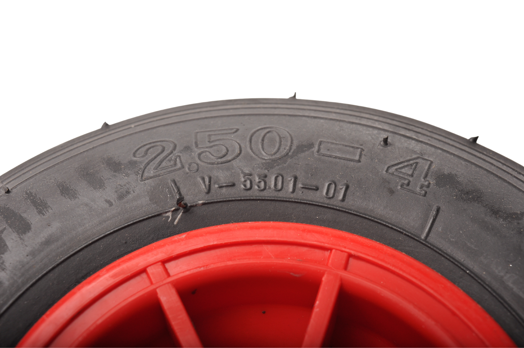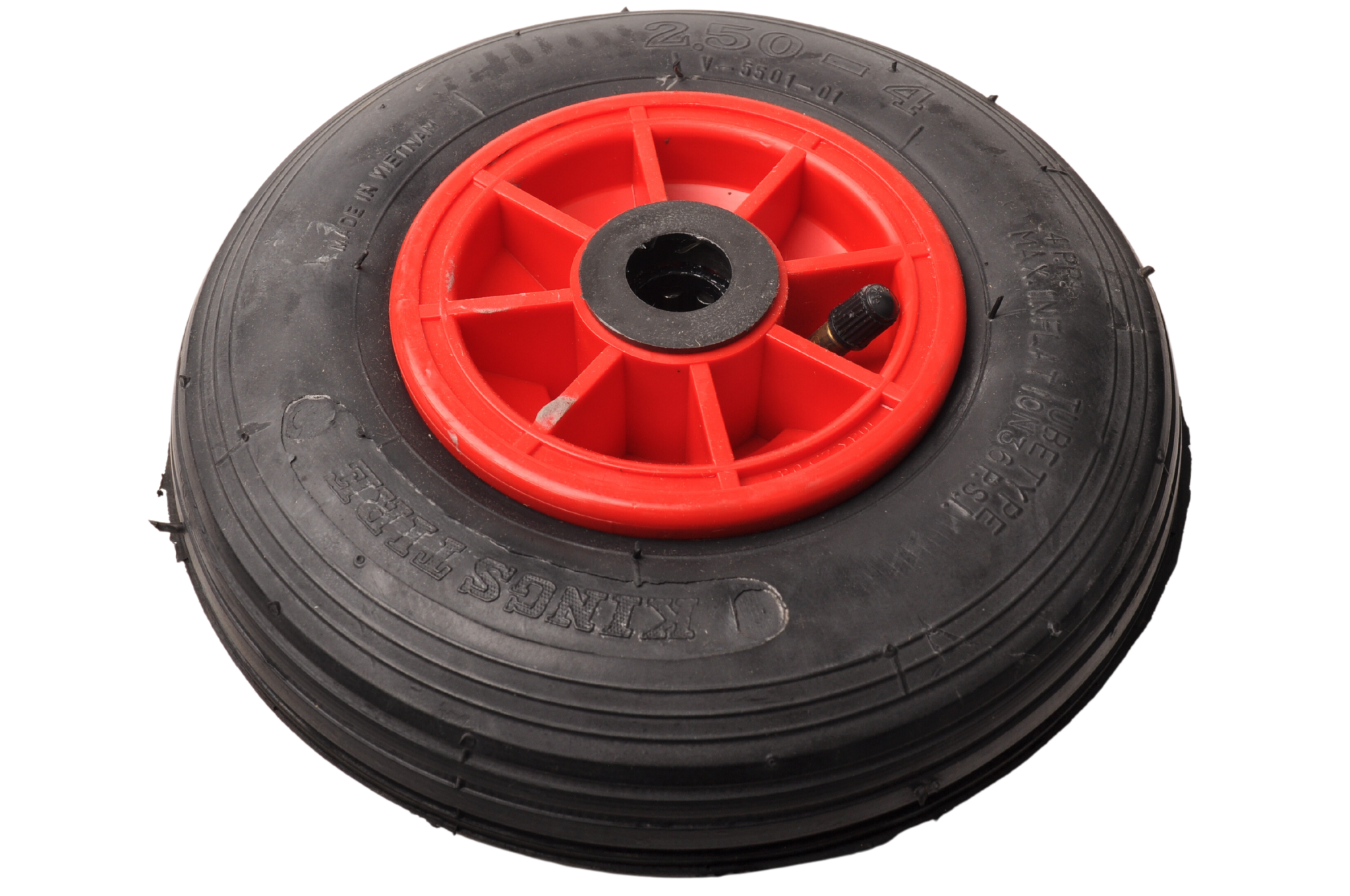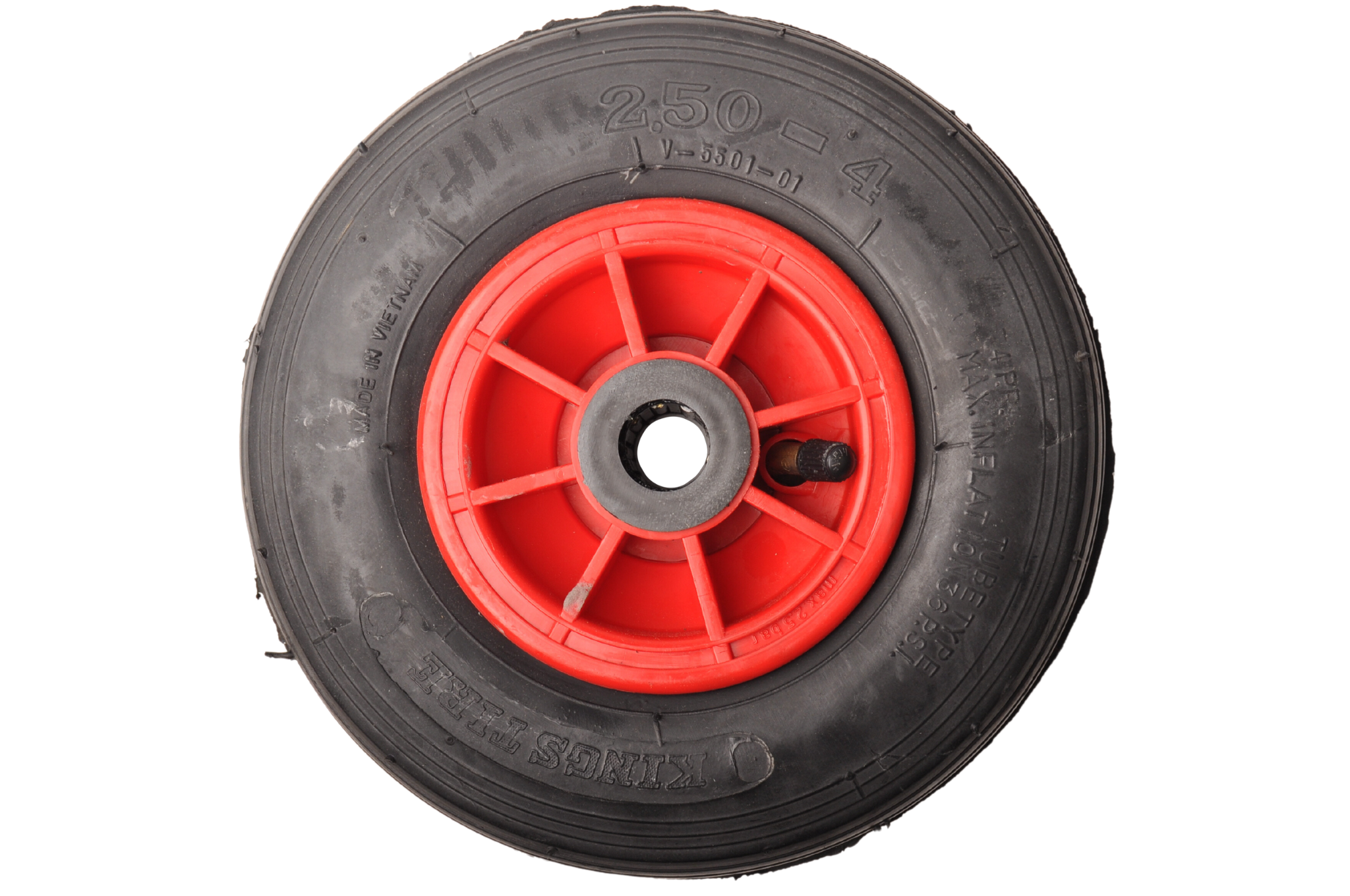 Roue de camion - 2.50-4 - bandage pneumatique et jante en plastique - charge maximale 75 kg - trou d'axe/diamètre de moyeu 20 mm - roulements à rouleaux inclus