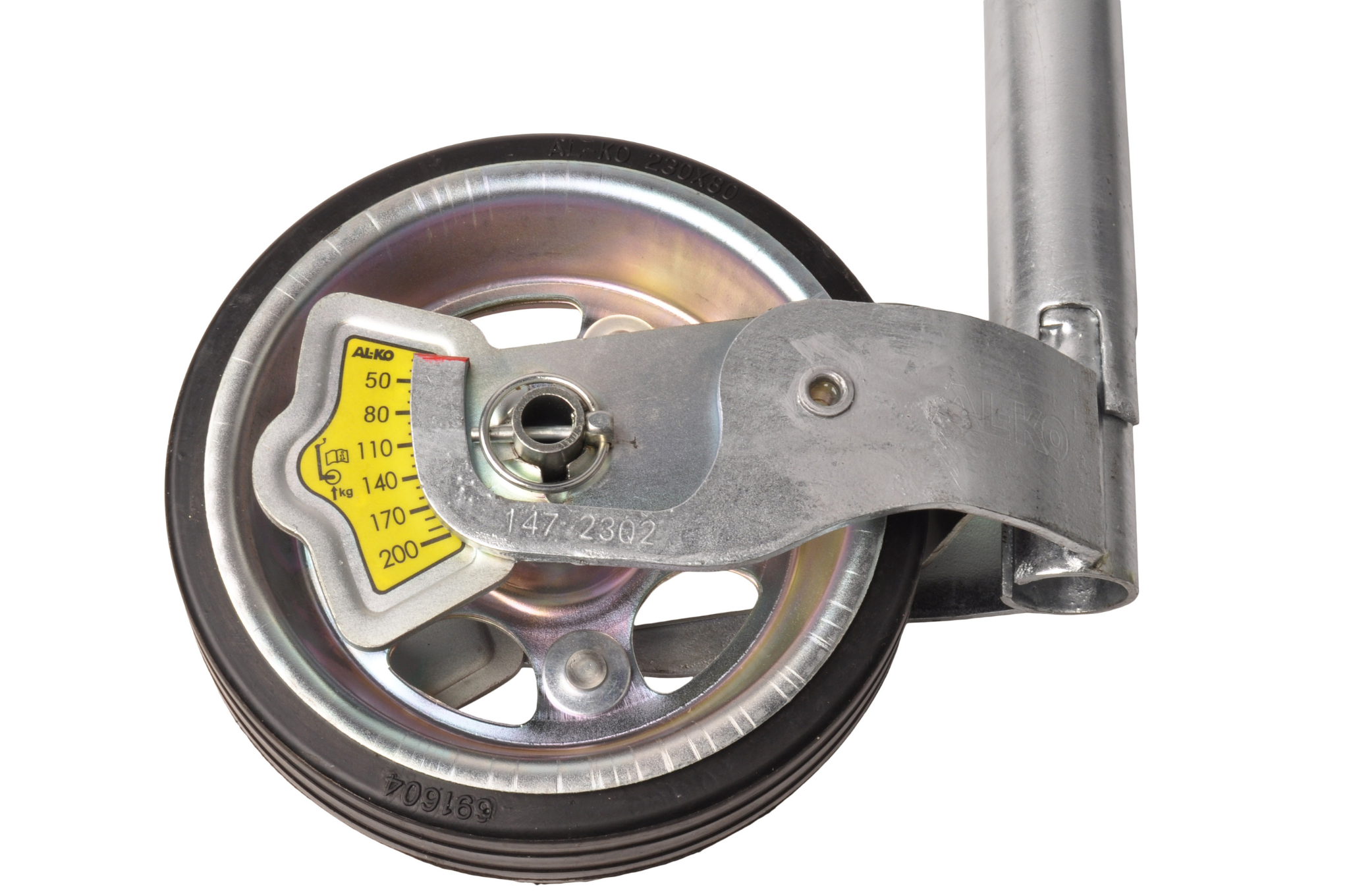 Roue de nez AL-KO avec un diamètre de tube de 48 mm. Cette roue de nez robuste est équipée d'une jante en acier avec un manomètre à roulement à billes. Grâce à ce manomètre, vous pouvez facilement mesurer la pression de la roue de nez. Cette roue de nez est également équipée d'une manivelle avec un roulement à pression, ce qui rend l'actionnement de la manivelle très facile. Cette roue avant a une charge maximale de 300 kg à l'arrêt et de 180 kg lors des manœuvres.
