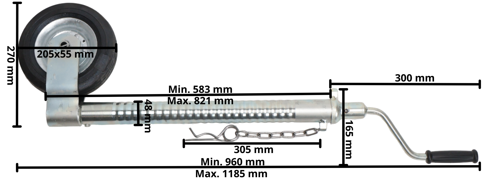 Roue jockey Ifor Williams - 48 mm - nervuré- 200 kg - jante en acier