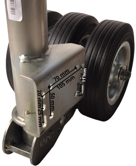 Roue jockey pliable - 60 mm - Capacité de charge statique de 250 kg - 3 roues massive