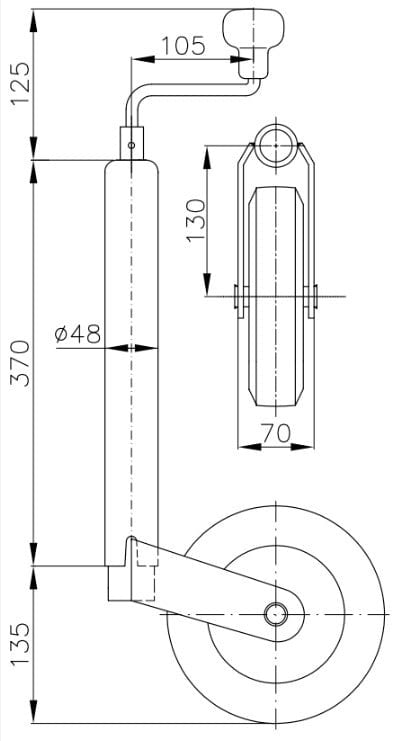Roue jockey - ronde diamètre 48 mm - pneus en caoutchouc et Jante en acier