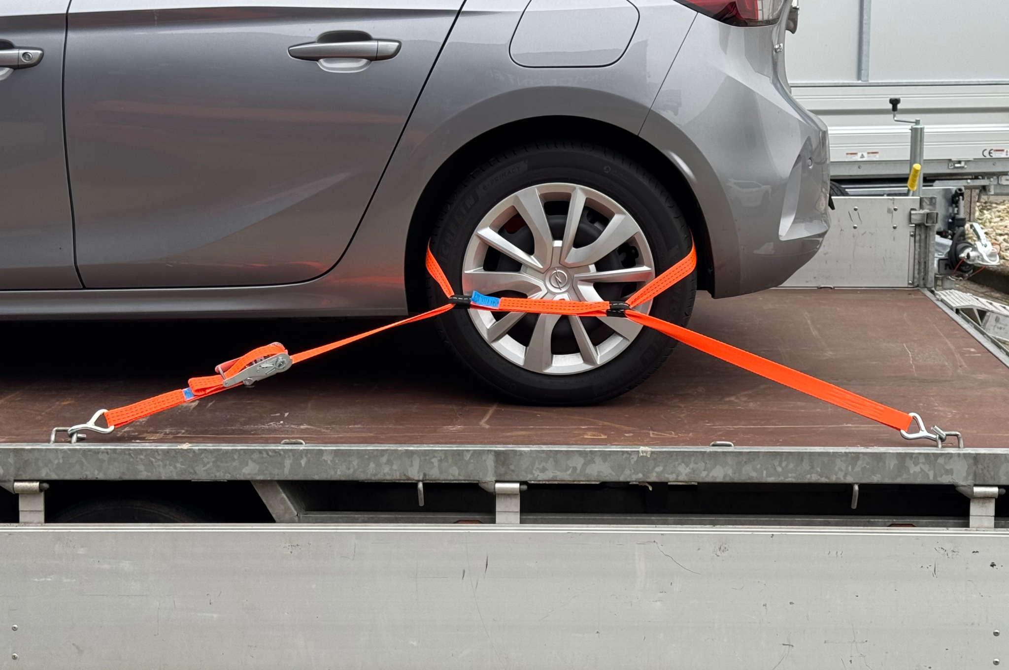 Cette sangle d'arrimage permet d'attacher la voiture en toute sécurité sur la remorque sans endommager les Jantes. Un must pour le transporteur professionnel de voitures Convient à toutes les roues de voitures et de remorques.