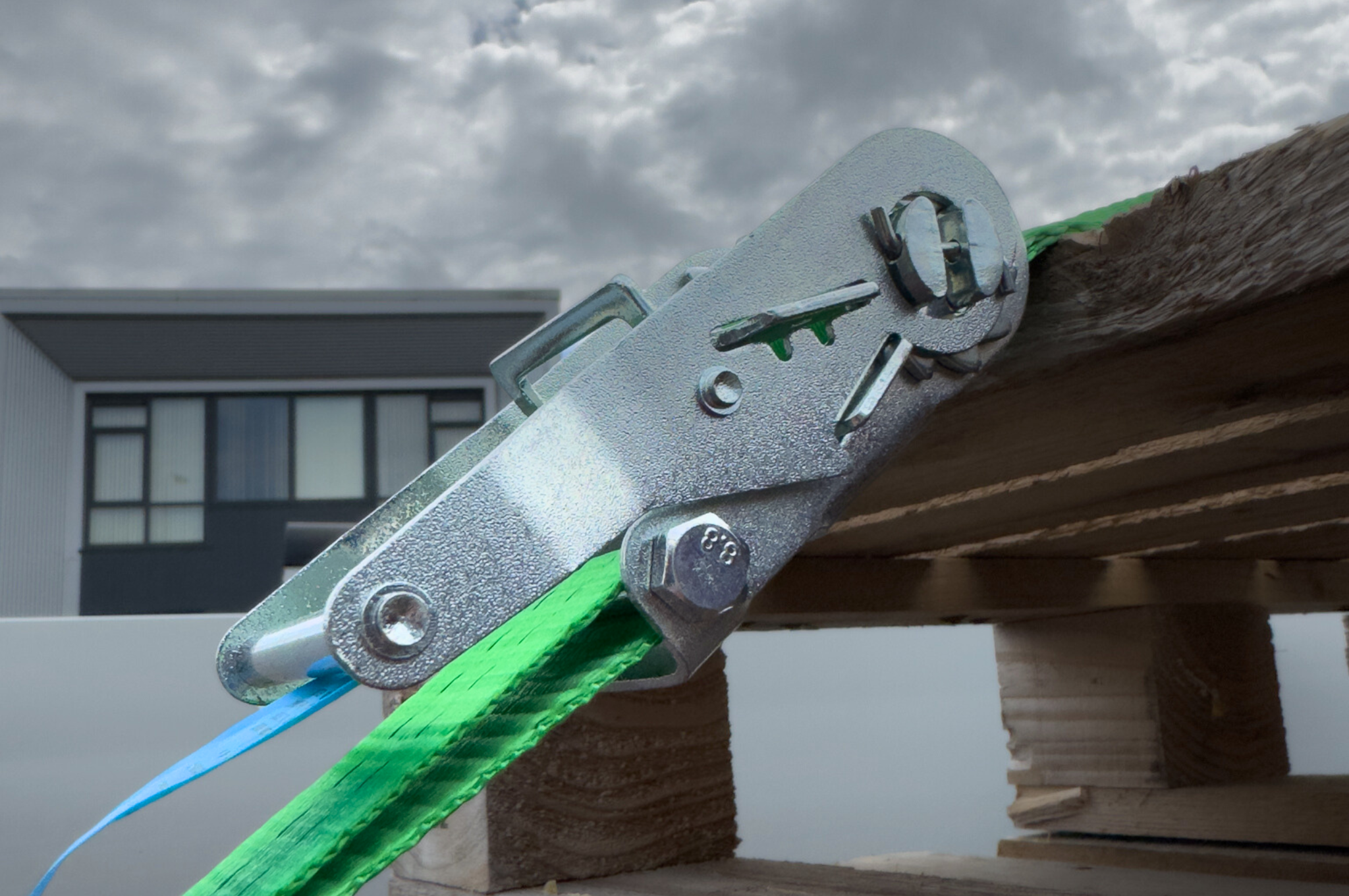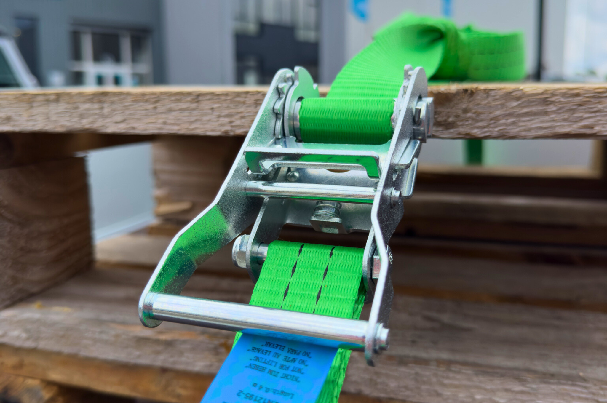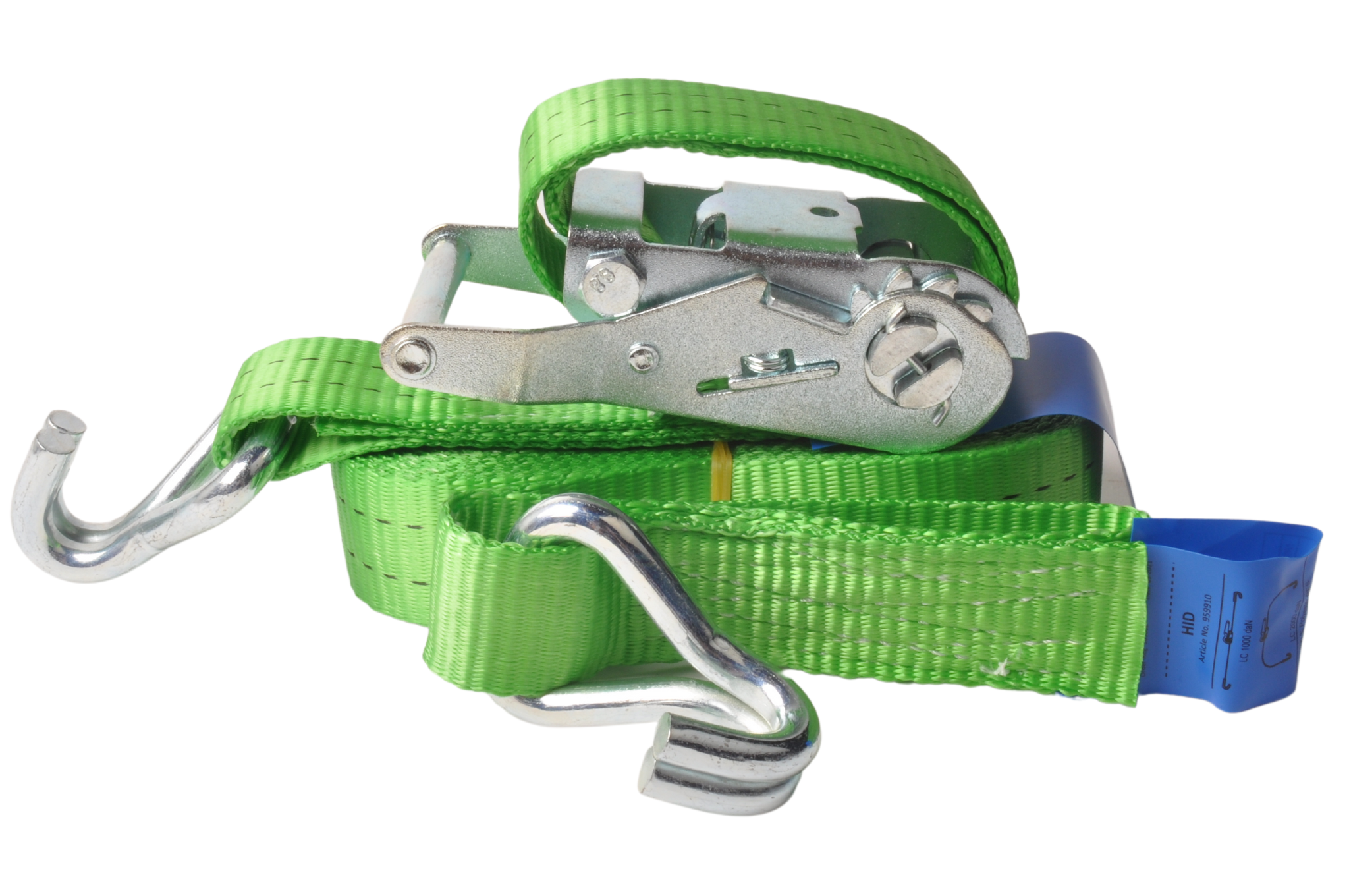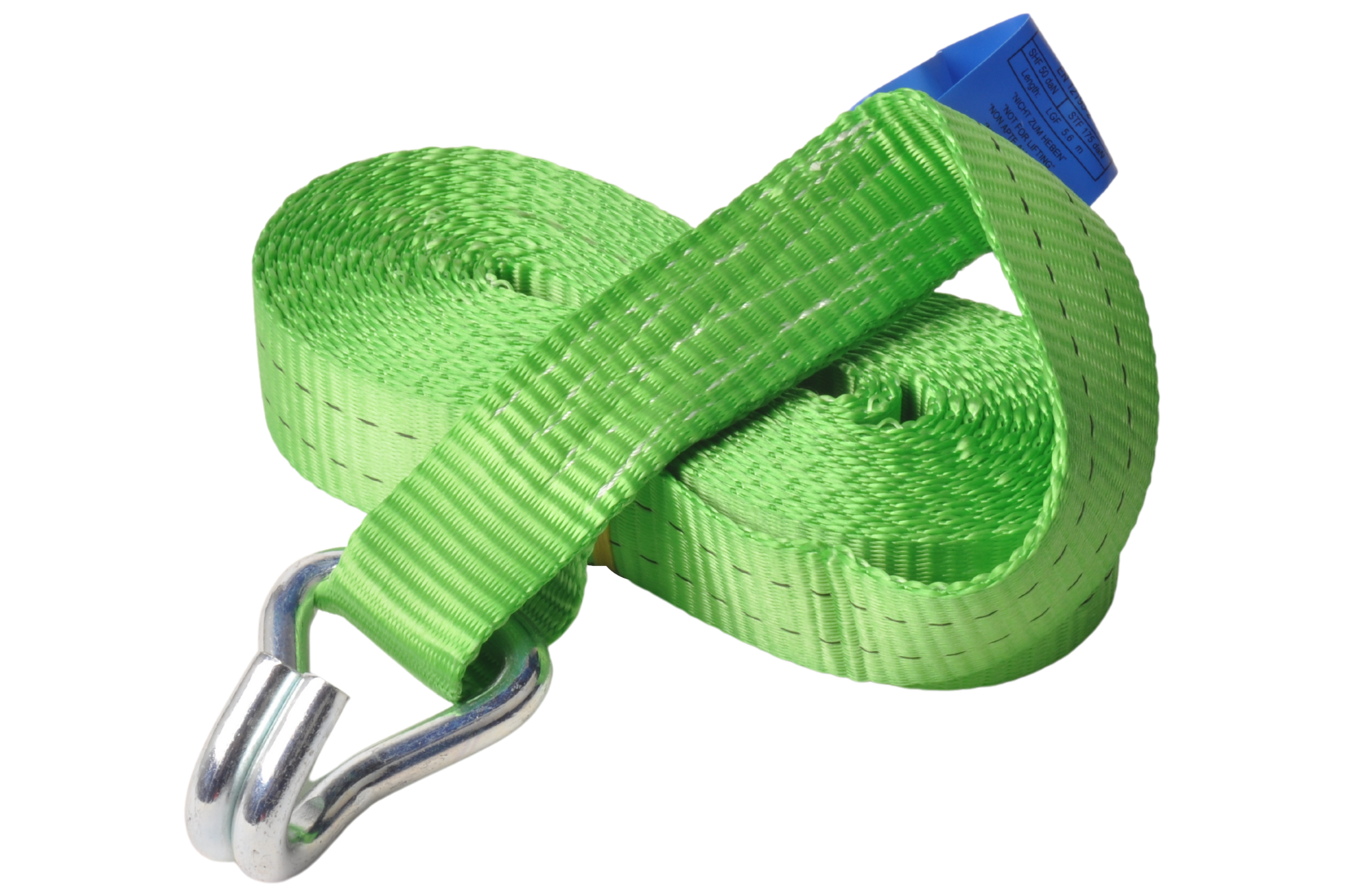 Cette sangle d'arrimage verte a une capacité de charge verticale allant jusqu'à 1000kg et une traction totale allant jusqu'à 2000kg. Cette sangle d'arrimage est livrée avec un crochet libre et un cliquet.