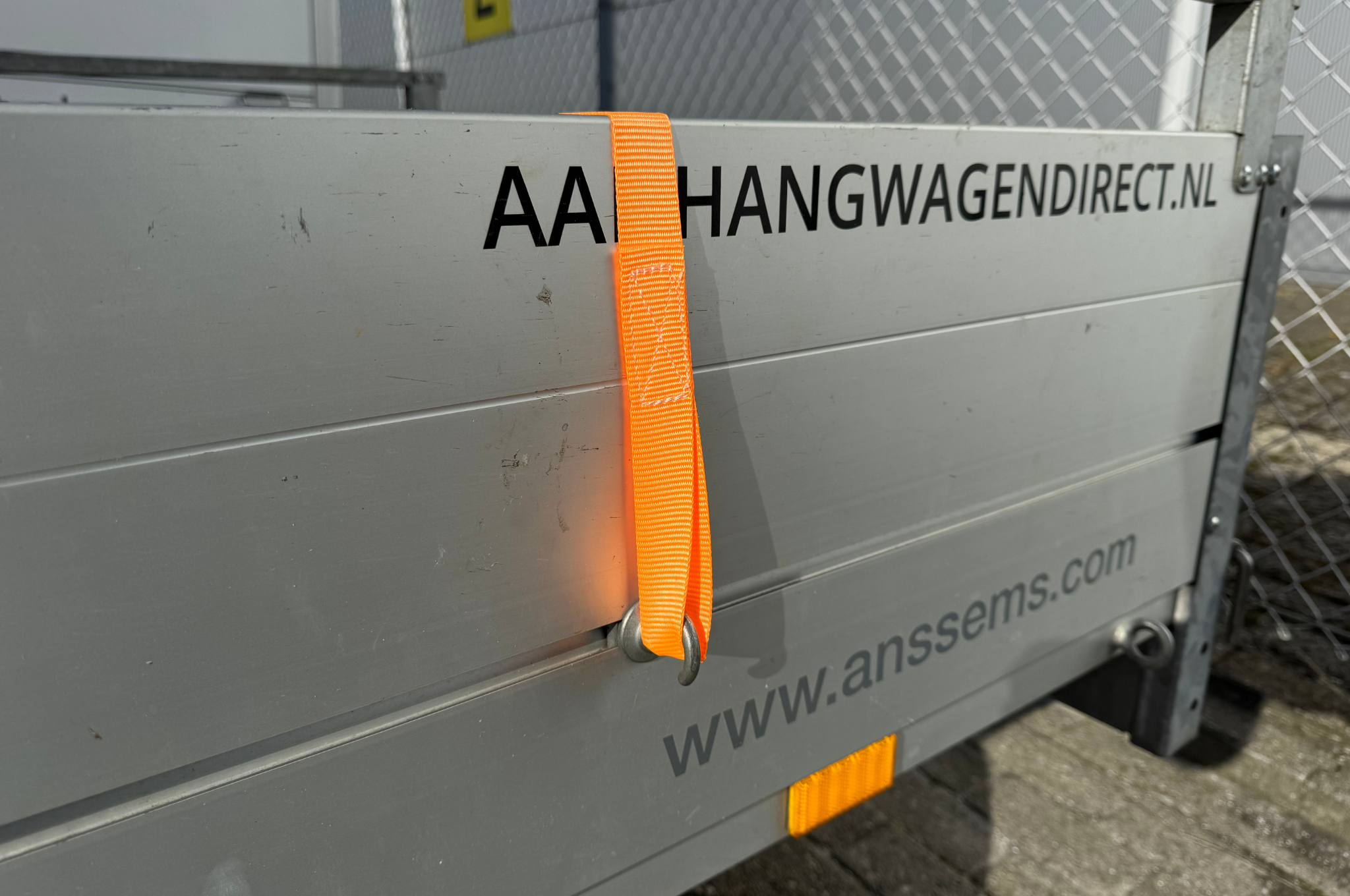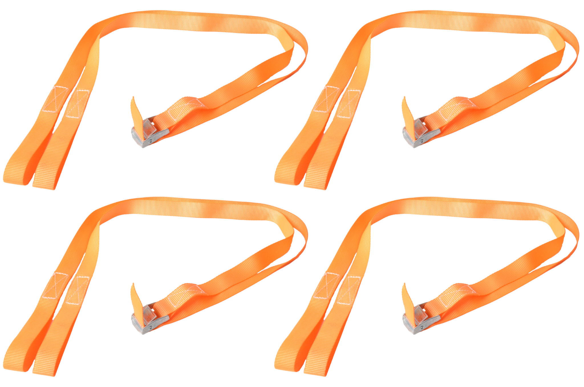 Lot de 4 sangles d'arrimage - 195x2,5 cm - orange - charge de rupture 250 kg - 2 parties