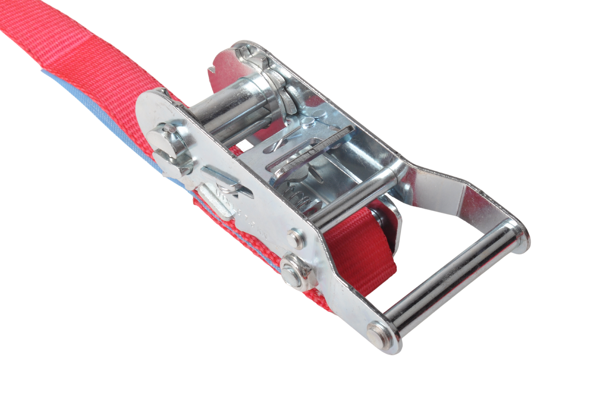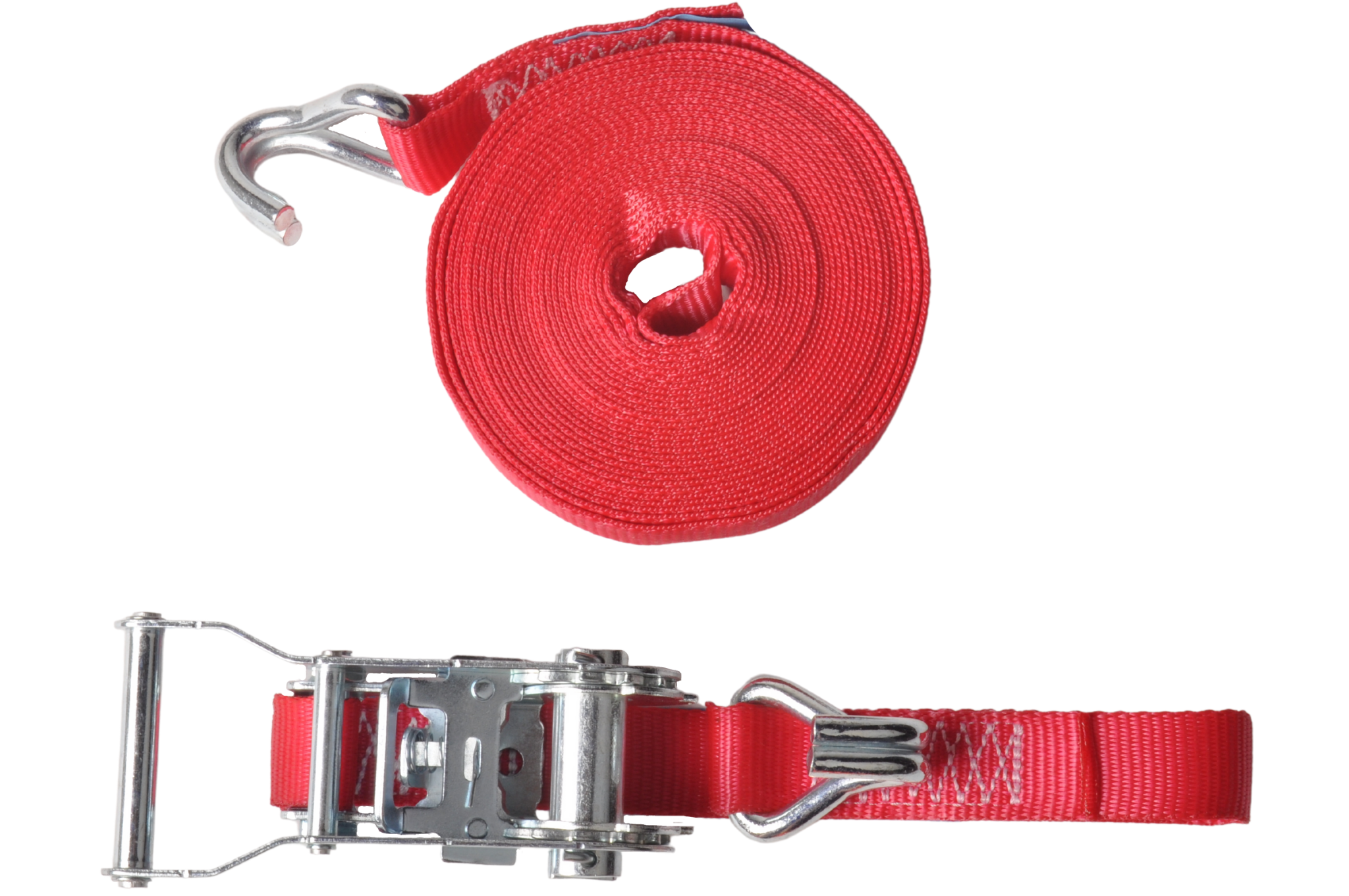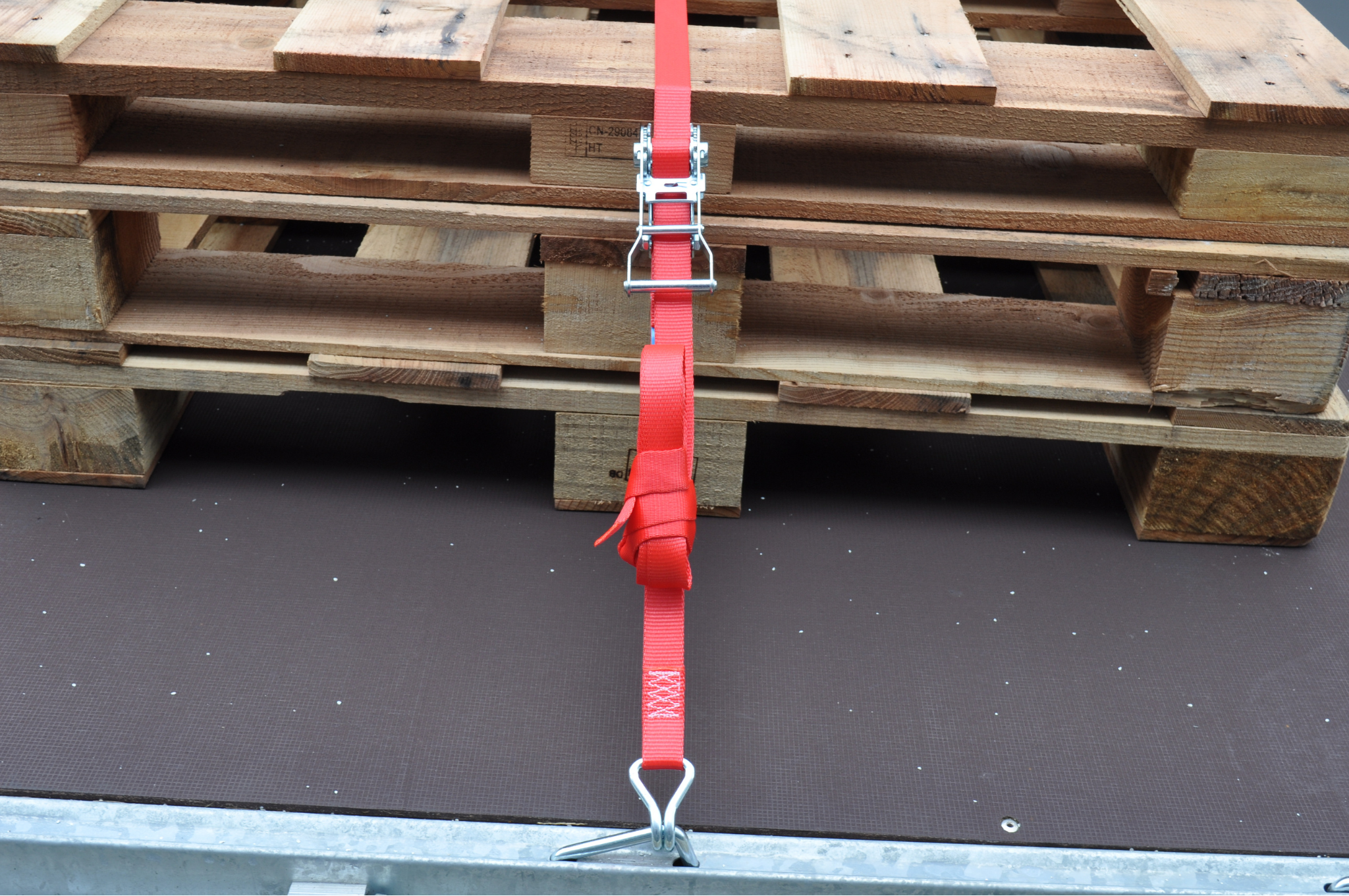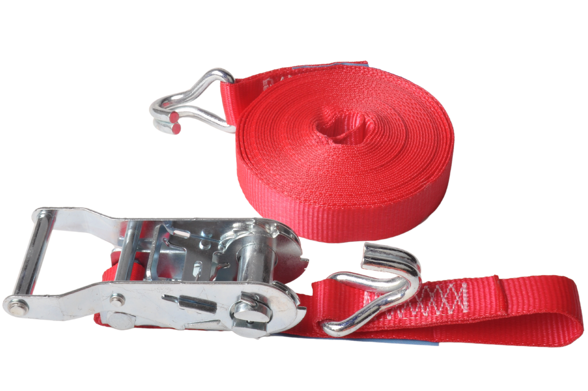 Cette sangle de serrage rouge de 7 mètres de long avec une charge de rupture maximale de 750 kg est livrée en standard avec un crochet et un cliquet séparés.