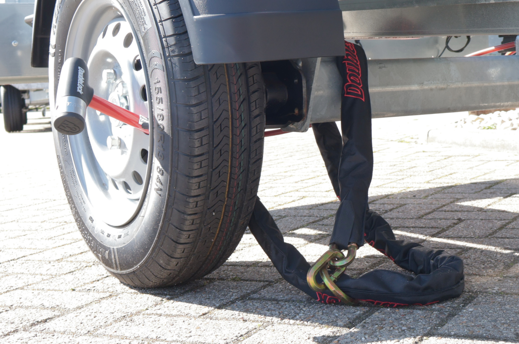 La Serrure à chaîne DoubleLock convient parfaitement pour sécuriser les remorques, les motos et autres objets. L'un des grands avantages des Serrures à chaîne est qu'elles peuvent être utilisées de manière universelle pour différents véhicules, machines et objets.