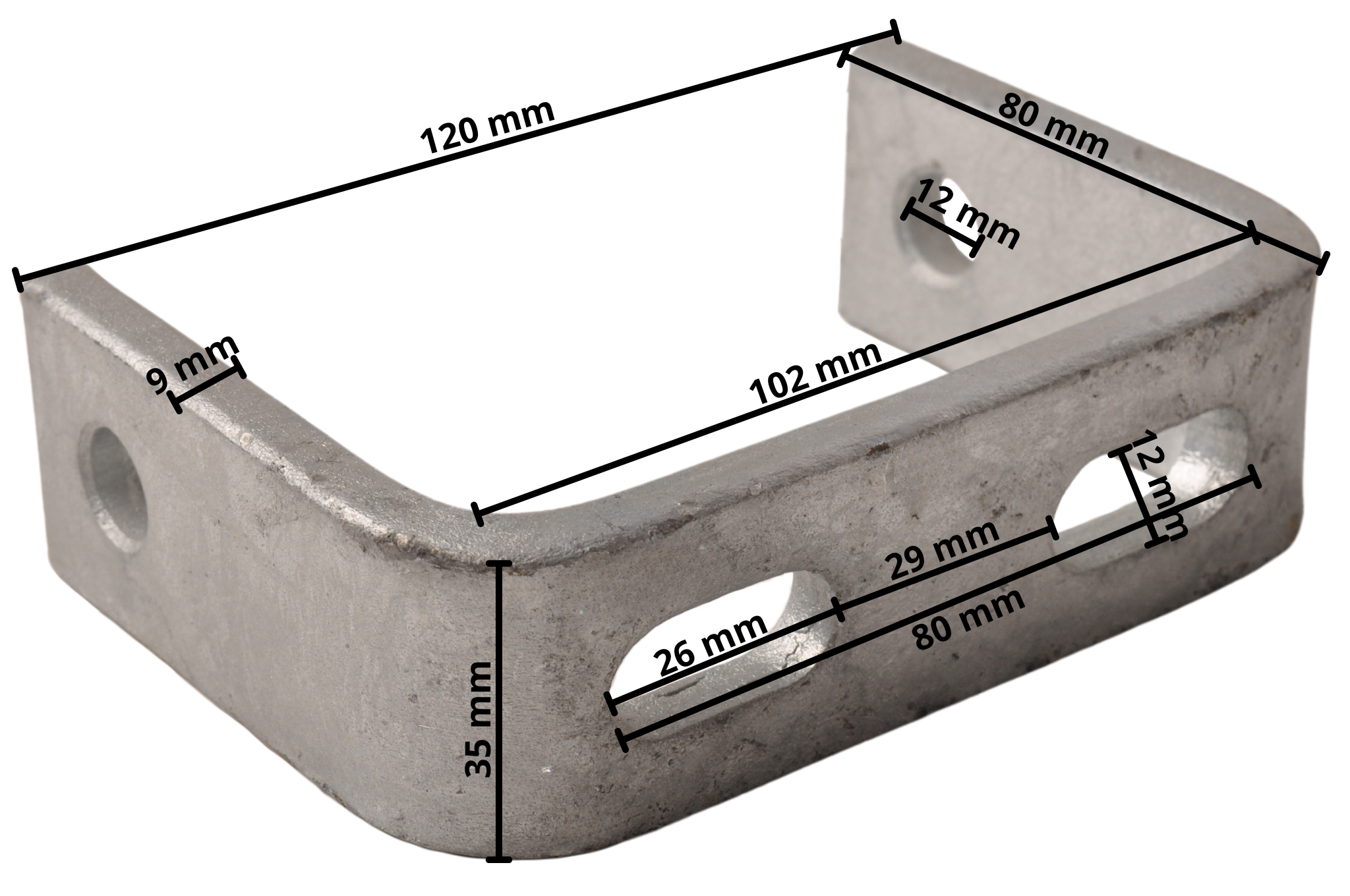 Support de quille galvanisé Poutre en U - Longueur 120 mm - avec trous oblongs